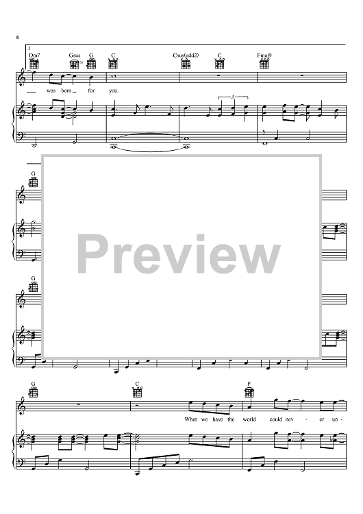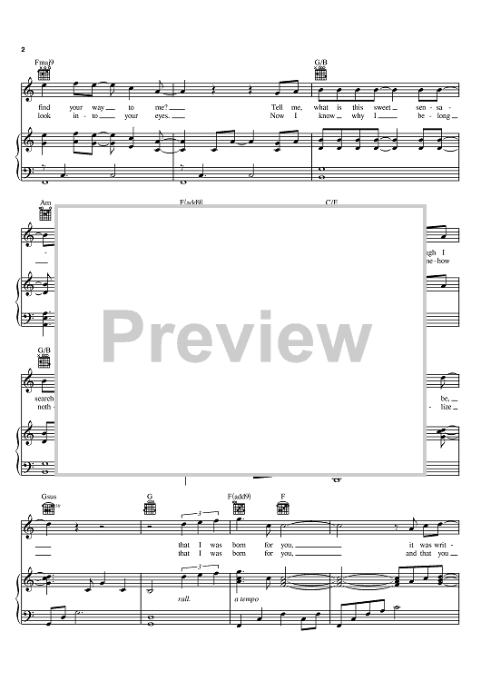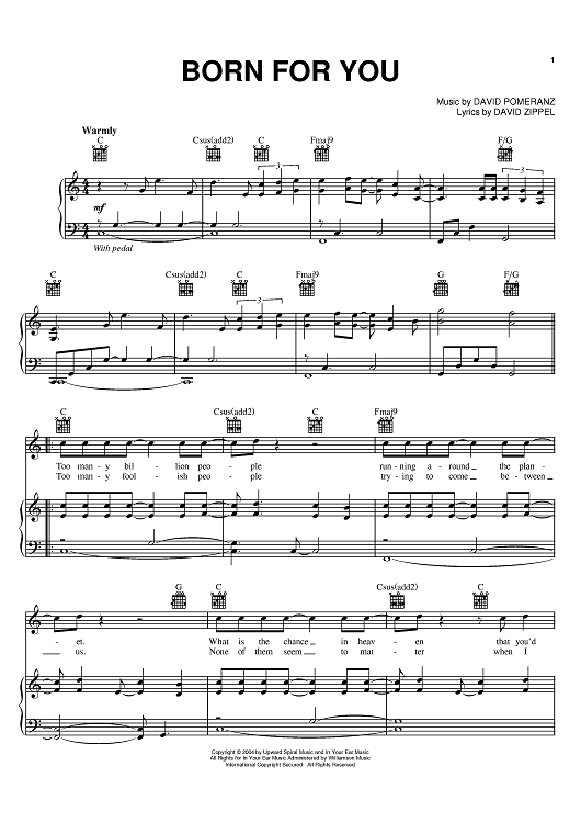 Digital Sheet Music for Born For You by David Zippel, David Pomeranz, Peter Davenport, Kathie Lee Gifford scored for Piano/Vocal/Chords; id:375025