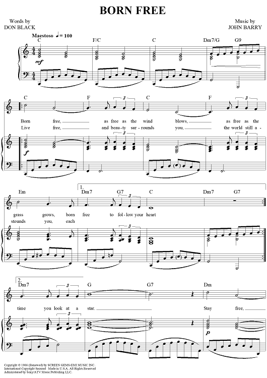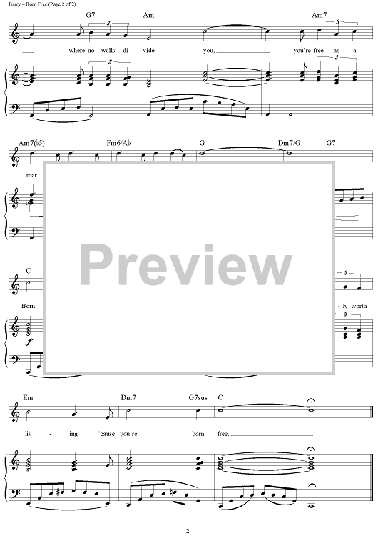 Digital Sheet Music for Born Free by Andy Williams, John Barry, Don Black scored for Piano/Vocal/Chords; id:360901