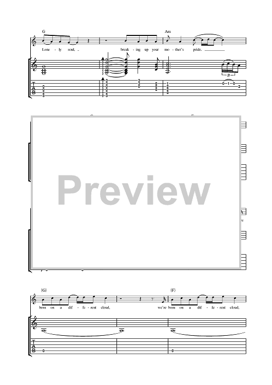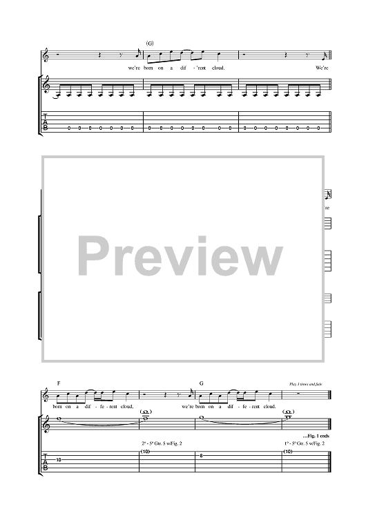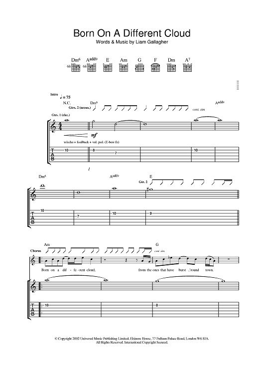 Digital Sheet Music for Born On A Different Cloud by Oasis scored for Guitar Tab; id:377648