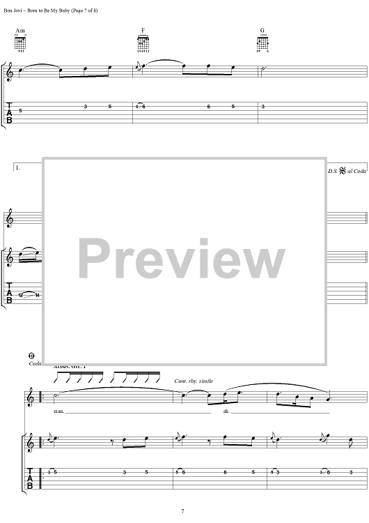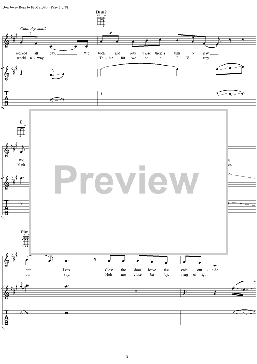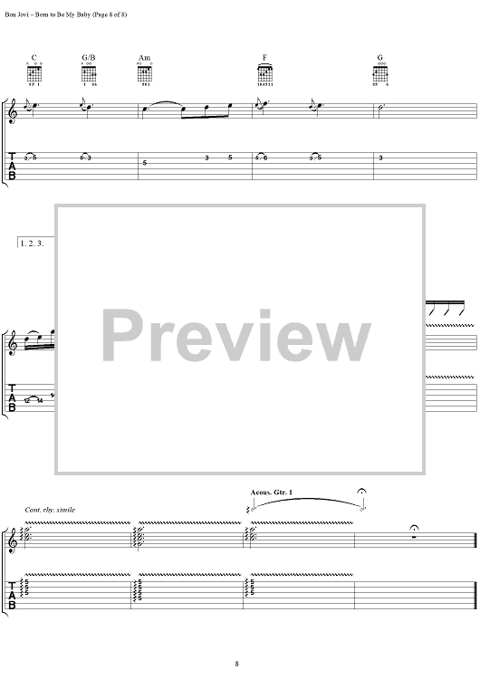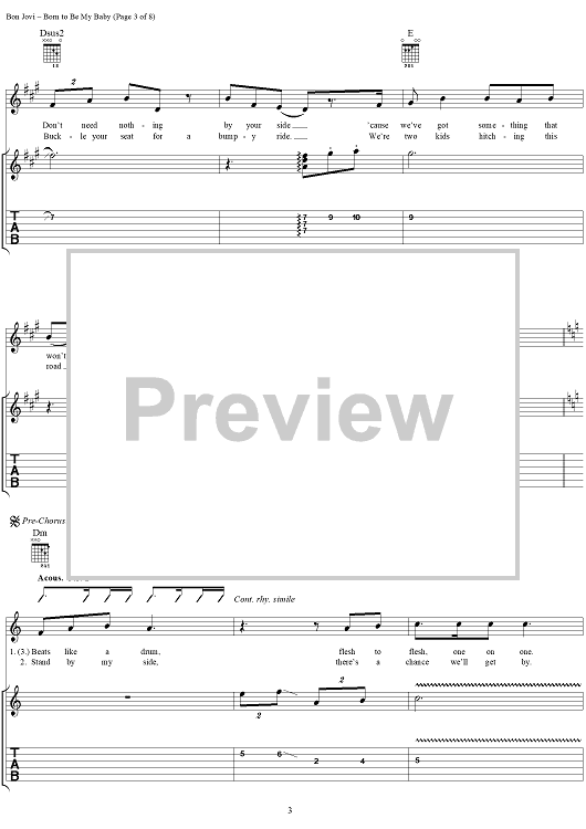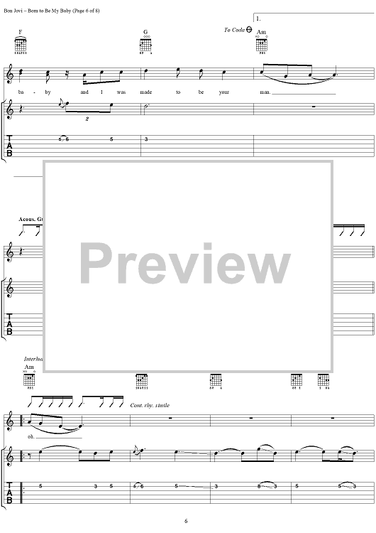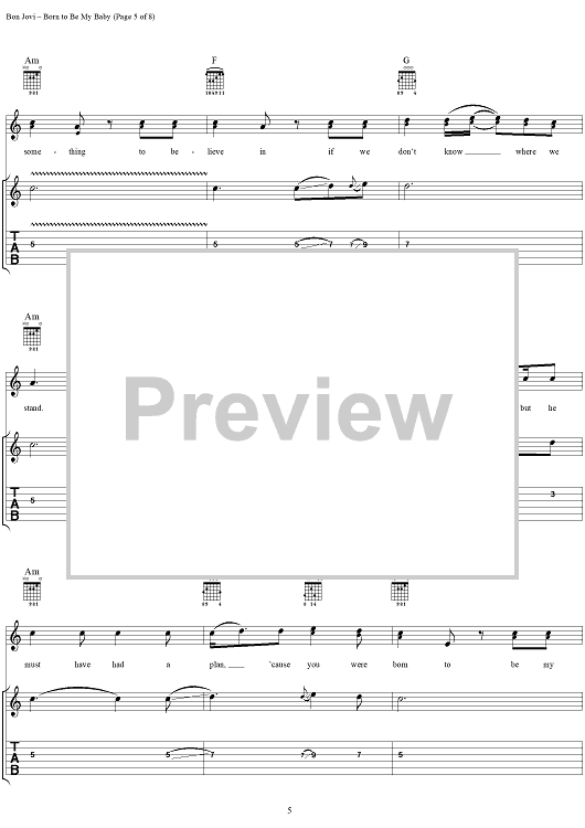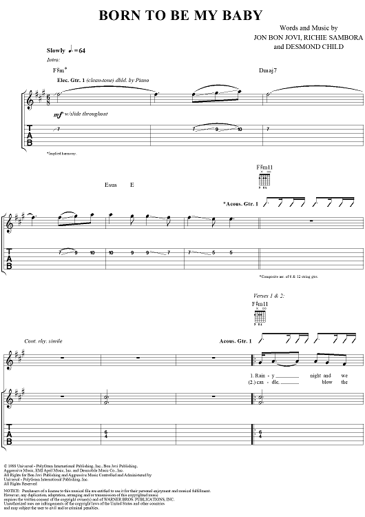 "Born to Be My Baby (Acoustic)" Sheet Music by Bon Jovi