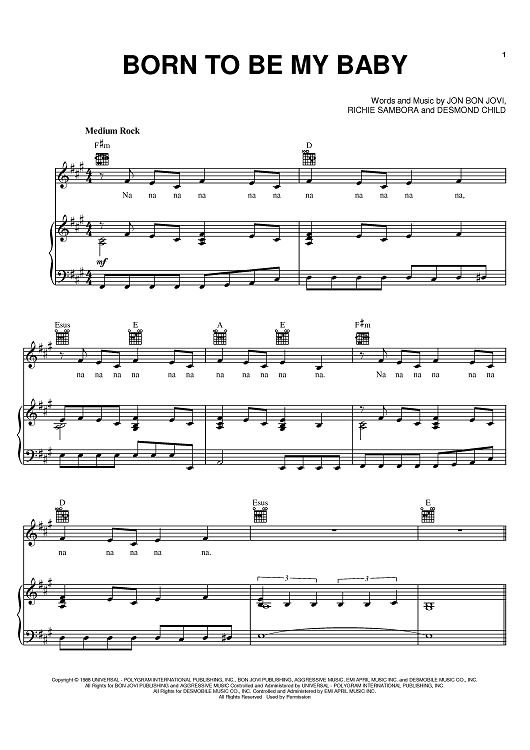 Digital Sheet Music for Born To Be My Baby by Bon Jovi, Richie Sambora, Desmond Child, Jon Bon Jovi scored for Piano/Vocal/Chords; id:383534