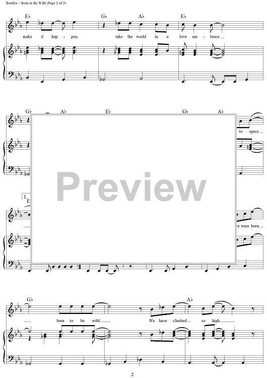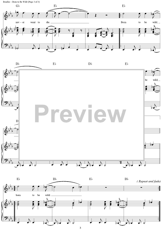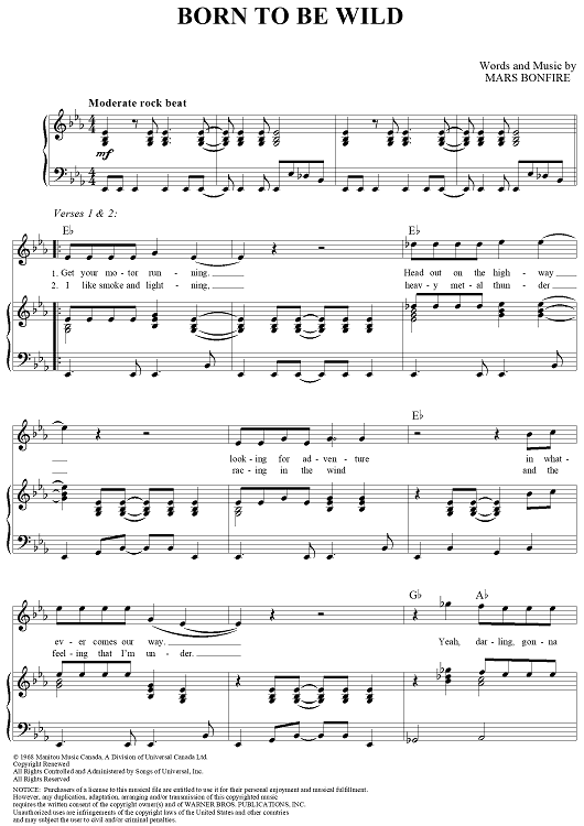 Digital Sheet Music for Born to Be Wild by Steppenwolf, Mars Bonfire scored for Piano/Vocal/Chords; id:287164