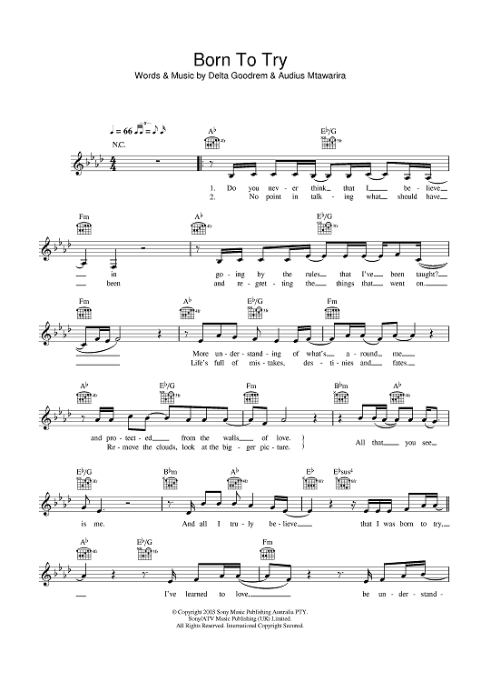 Digital Sheet Music for Born To Try by Delta Goodrem scored for Lead Sheet; id:378001