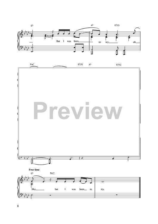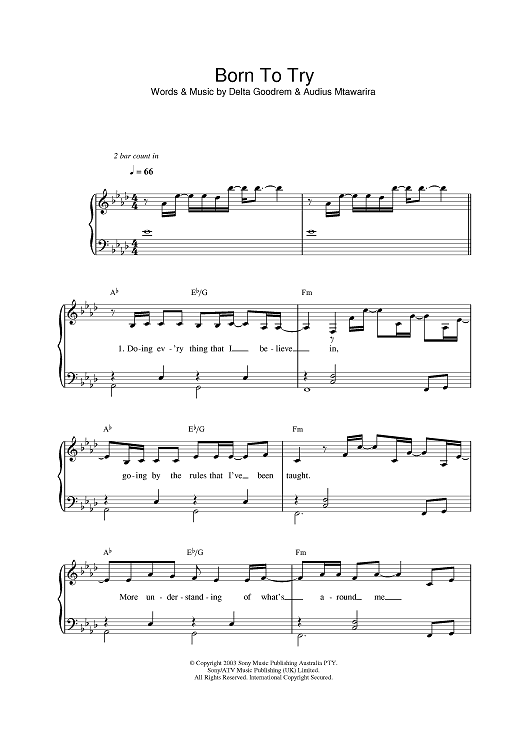 Digital Sheet Music for Born To Try by Delta Goodrem, Audius Mtawarira scored for Piano/Vocal/Chords; id:387741