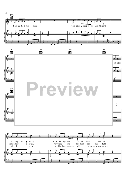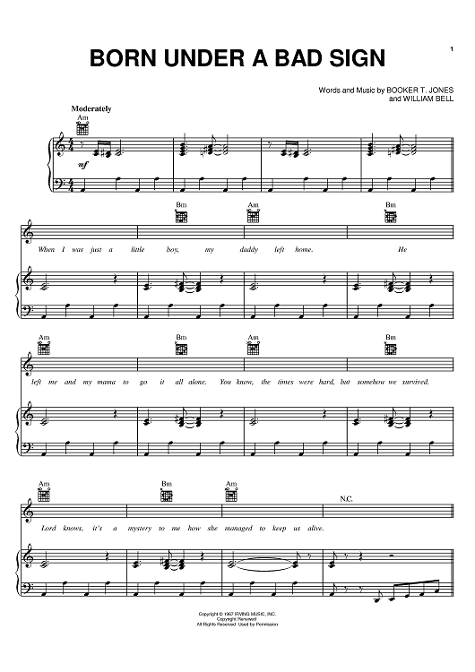 Digital Sheet Music for Born Under A Bad Sign by Booker T. Jones, William Bell, Albert King scored for Piano/Vocal/Chords; id:367537