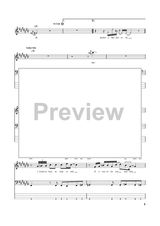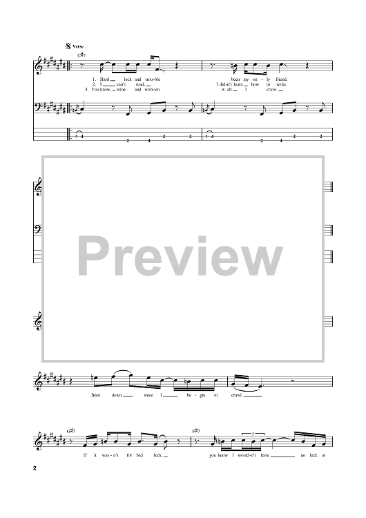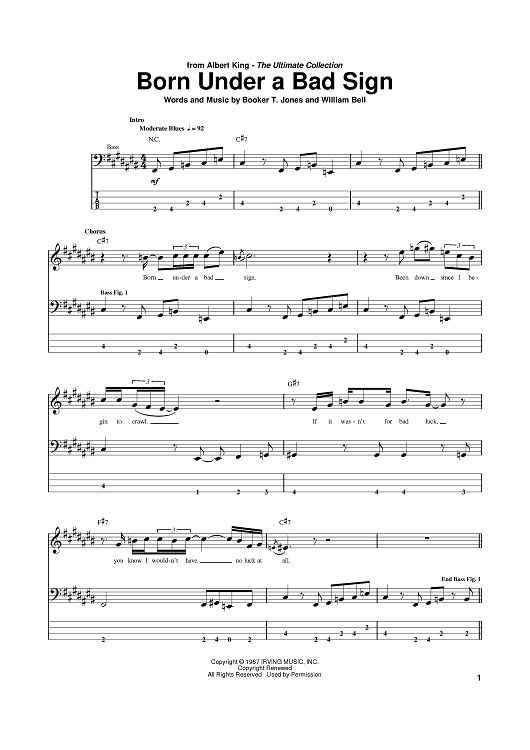 Digital Sheet Music for Born Under A Bad Sign by Booker T. Jones, Cream, William Bell, Albert King scored for Bass Tab; id:384105