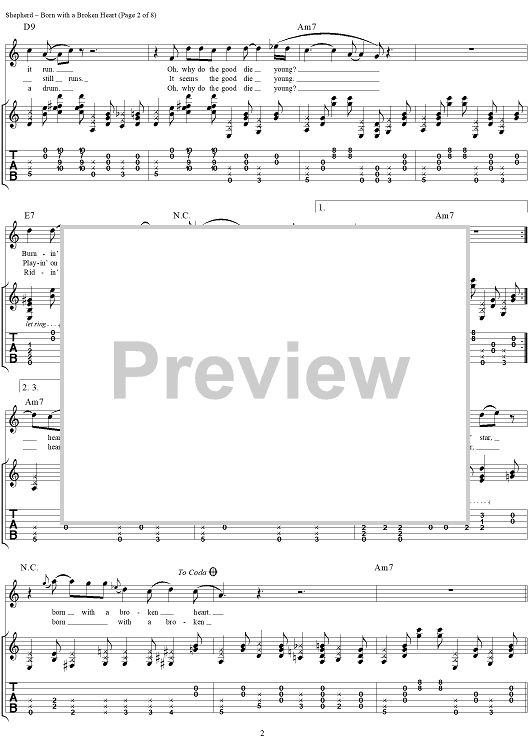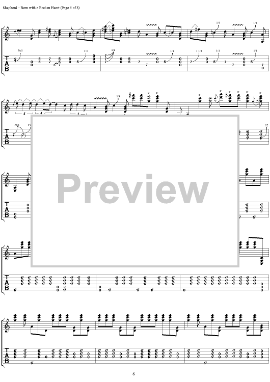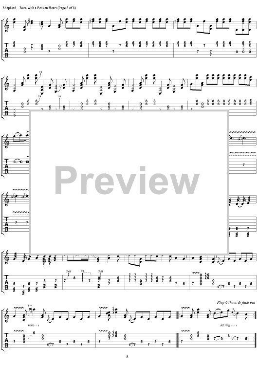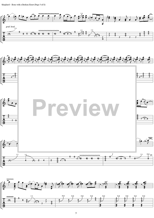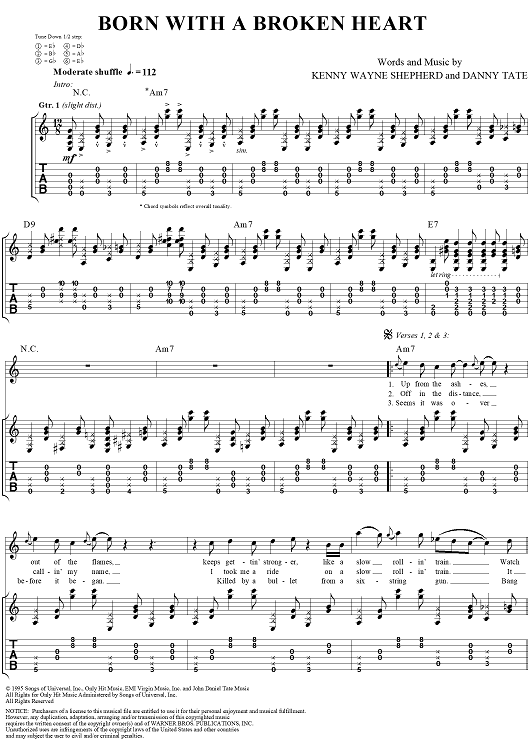 Digital Sheet Music for Born With a Broken Heart by Kenny Wayne Shepherd, Danny Tate, Kenny Wayne Shepherd Band scored for Guitar Tab/Vocal; id:290179