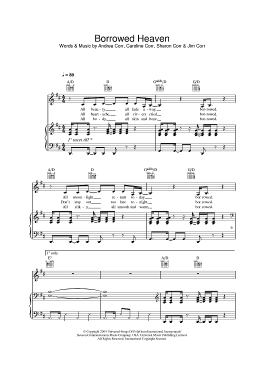 "Borrowed Heaven" Sheet Music by The Corrs