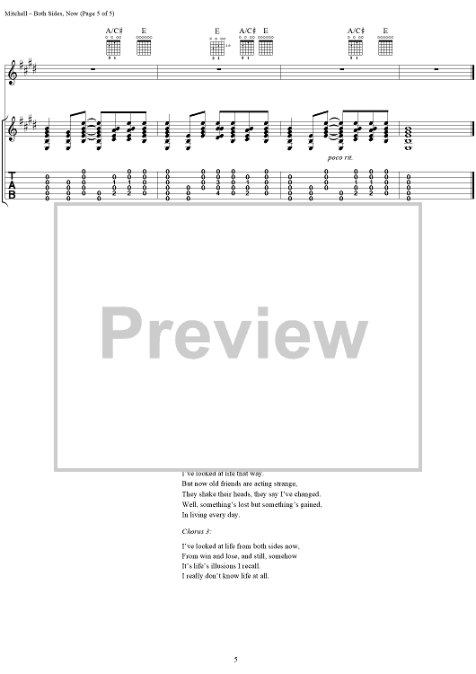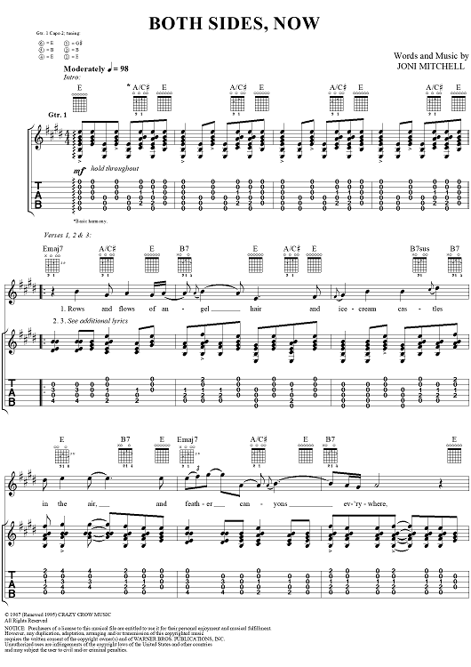 "Both Sides Now" Sheet Music by Joni Mitchell