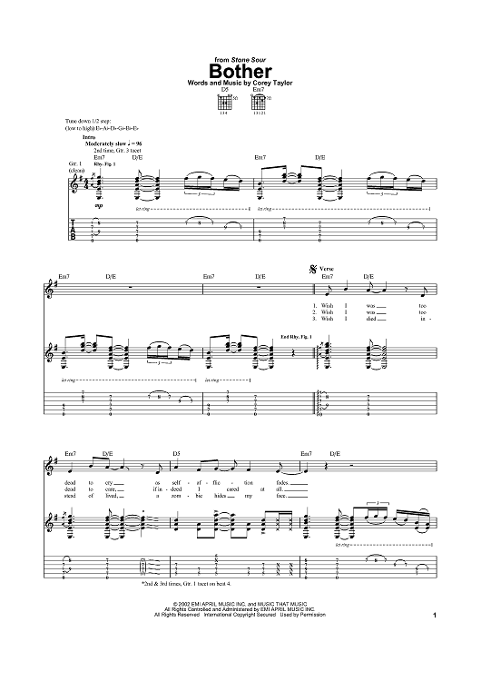Digital Sheet Music for Bother by Stone Sour, Corey Taylor scored for Guitar Tab; id:369303