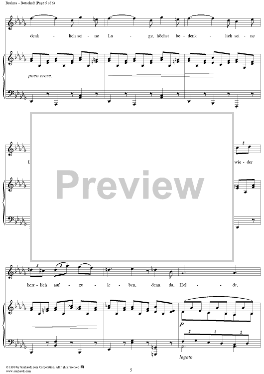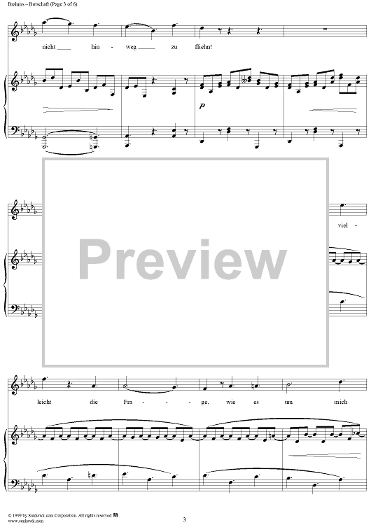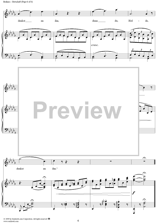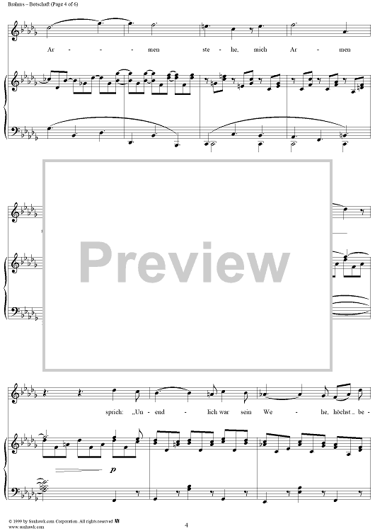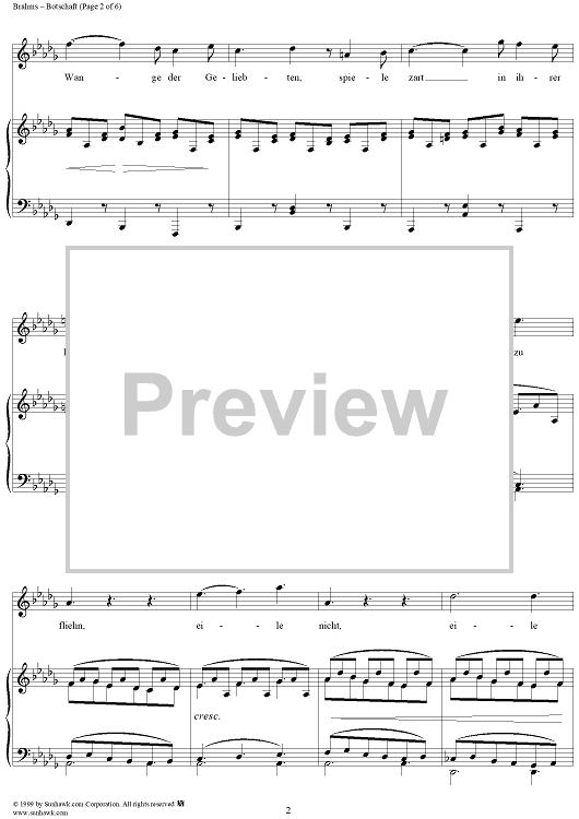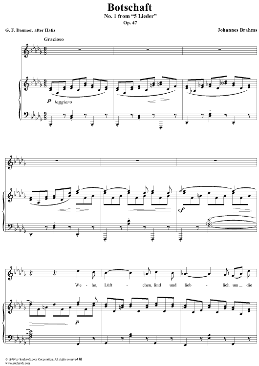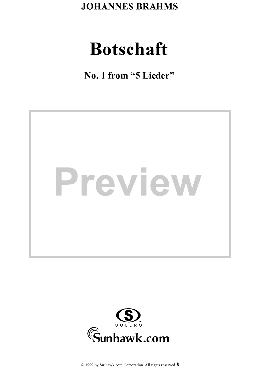 Digital Sheet Music for Botschaft by Johannes Brahms scored for Voice/Piano; id:118348