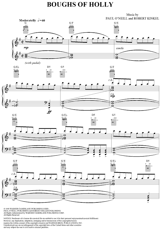 Digital Sheet Music for Boughs of Holly by Trans-Siberian Orchestra, Paul O'Neill, Robert Kinkel scored for Piano Solo; id:253015