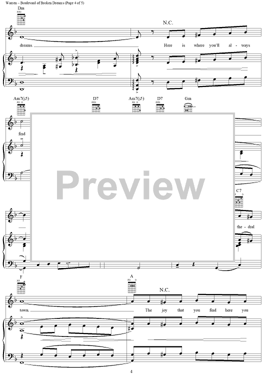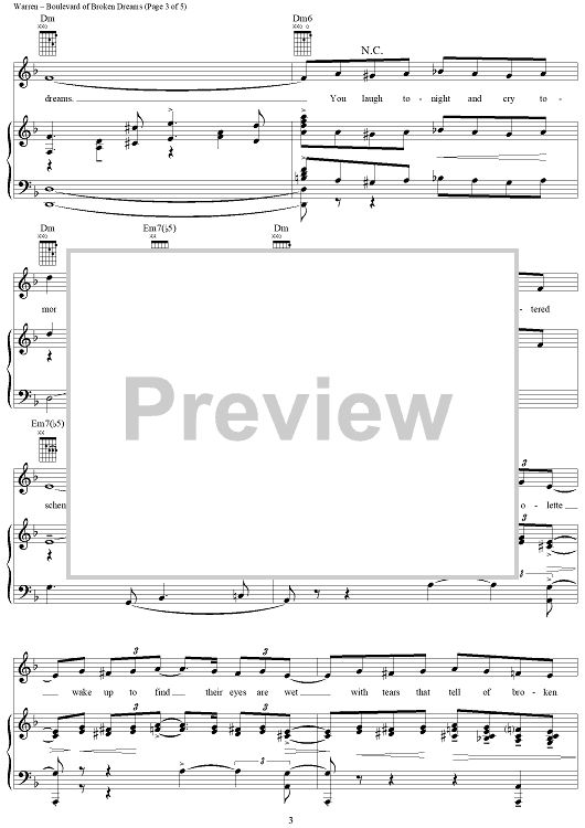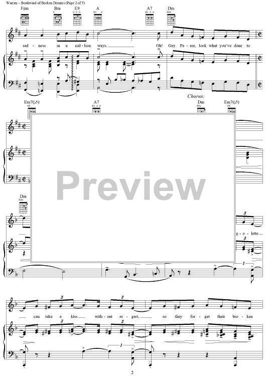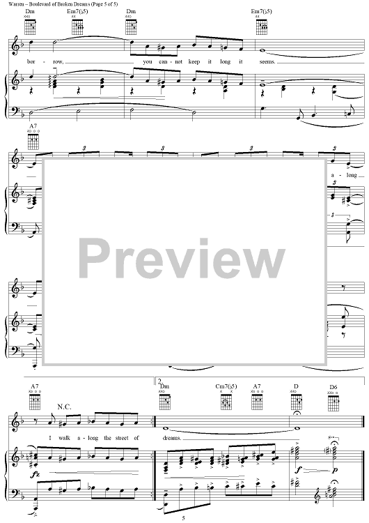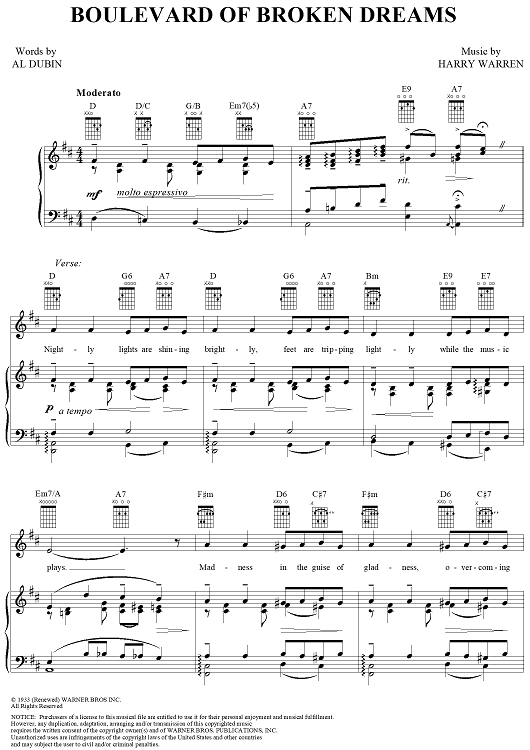 Digital Sheet Music for Boulevard of Broken Dreams by Harry Warren, Tony Bennett, Al Dubin scored for Piano/Vocal/Chords; id:264786