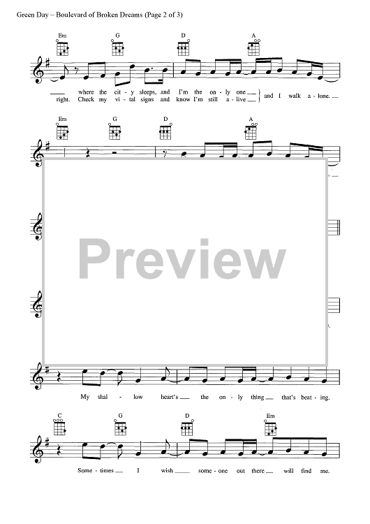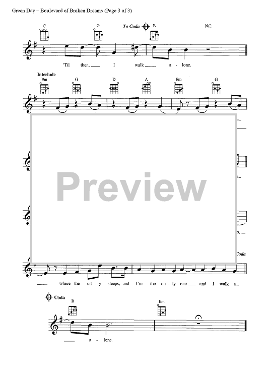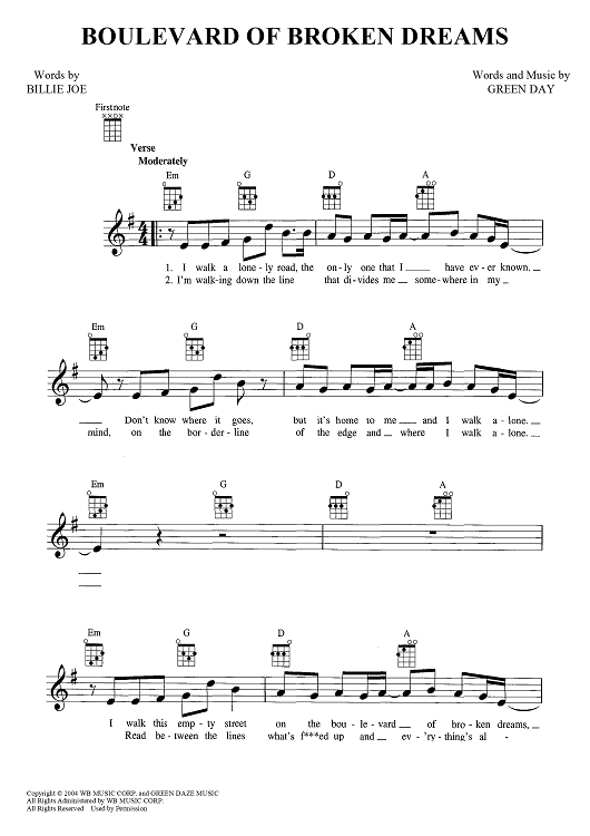 Digital Sheet Music for Boulevard of Broken Dreams by Green Day scored for Ukulele/Vocal; id:444744