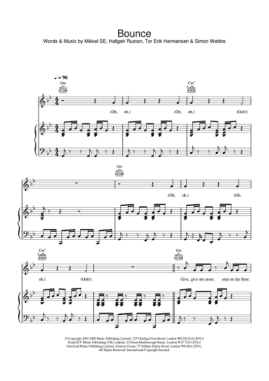 Digital Sheet Music for Bounce by Blue, Hallgeir Rustan, Mikkel Eriksen scored for Piano/Vocal/Chords; id:382613