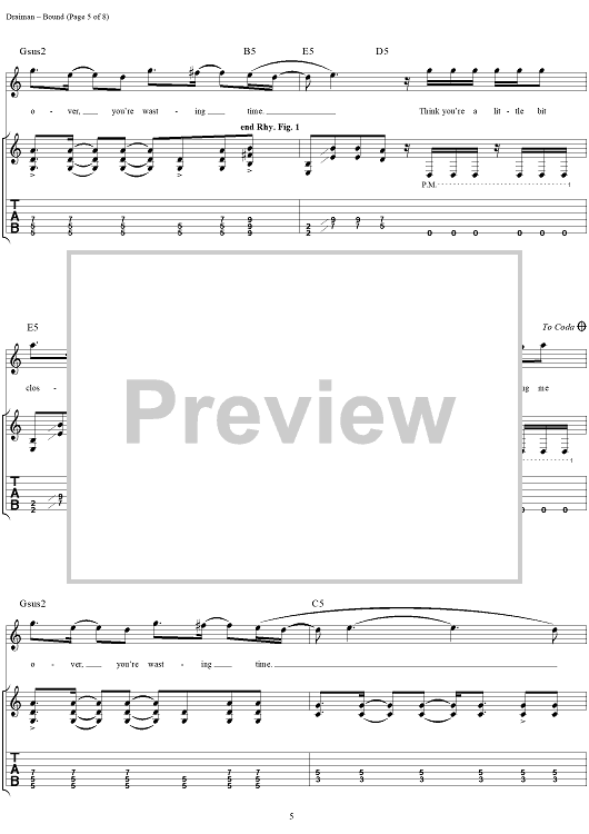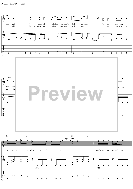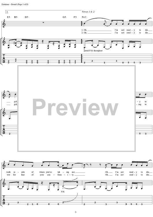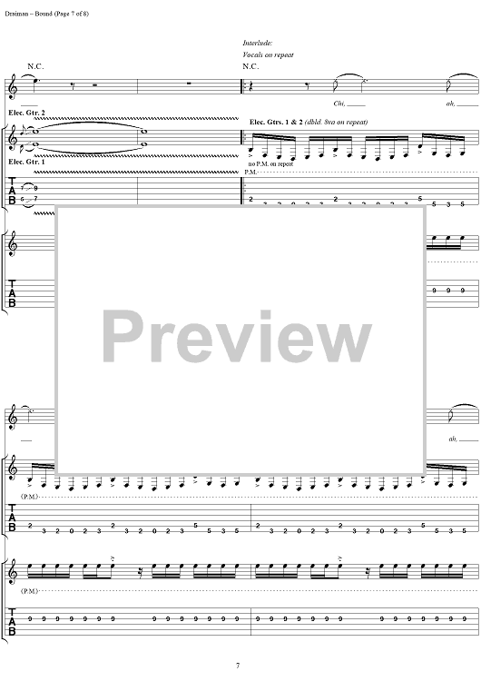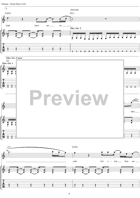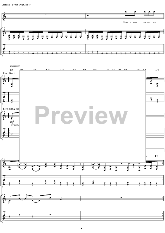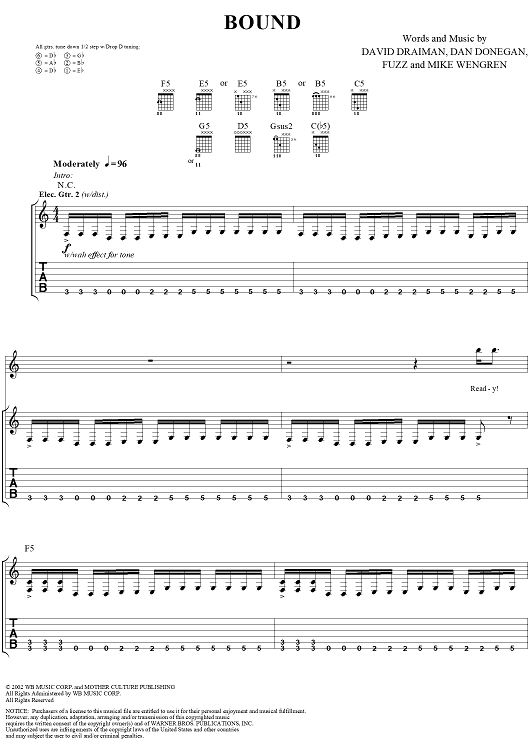 Digital Sheet Music for Bound by Disturbed, Mike Wengren, Dan Donegan, Fuzz, David Draiman scored for Guitar Tab/Vocal; id:294083