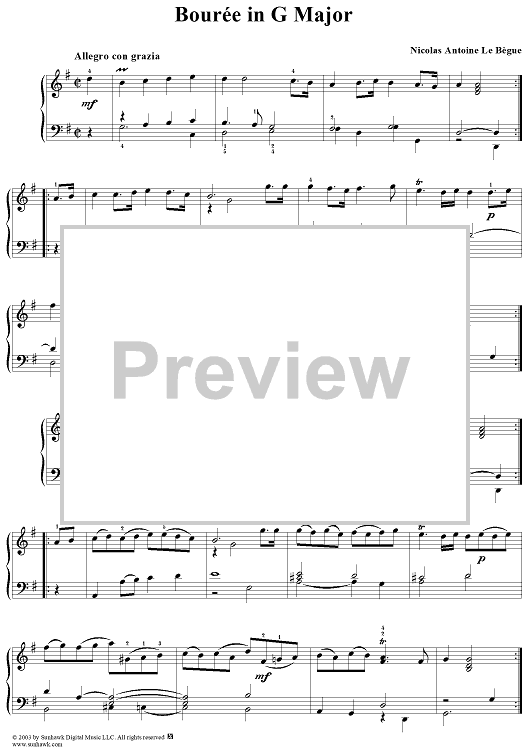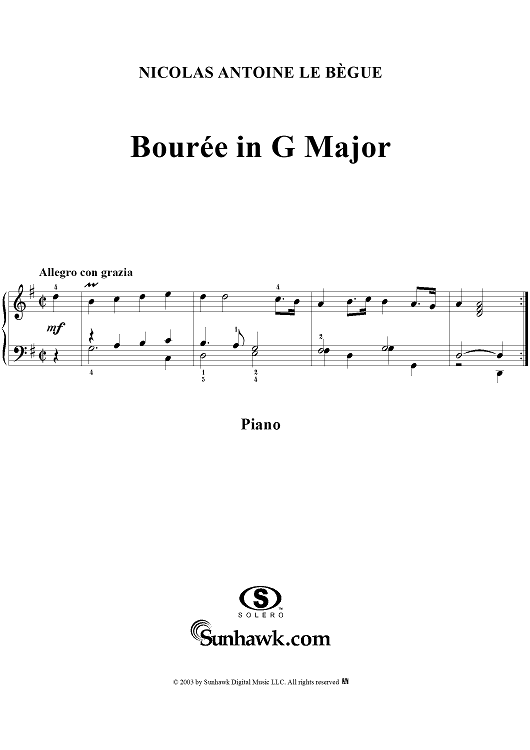 Digital Sheet Music for Bourée in G Major by Nicolas Antoine Le Bègue scored for Piano Solo; id:294837