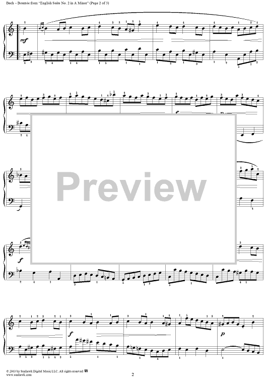 Digital Sheet Music for Bourree from the Second English Suite in A Minor by Heinze, Johann Sebastian Bach scored for Piano Solo; id:294438