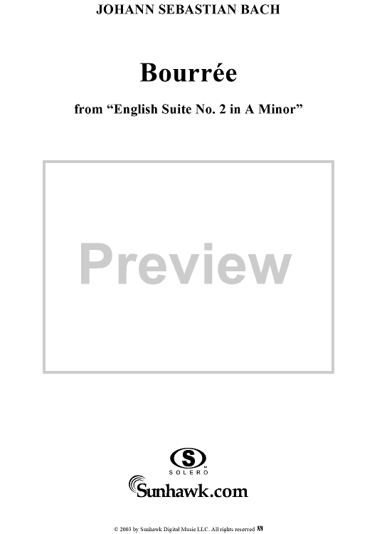 "Bourree from the Second English Suite in A Minor" Sheet Music by Johann Sebastian Bach