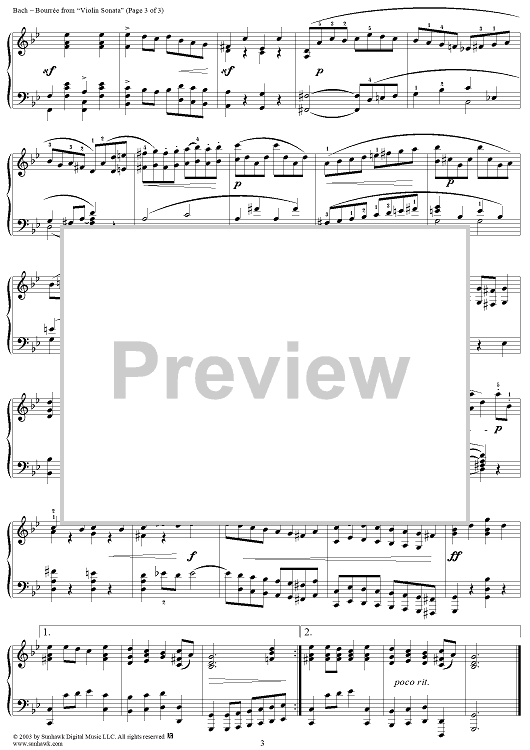 Digital Sheet Music for Bourree from the Second Violin Sonata in G Minor by Heinze, Johann Sebastian Bach scored for Piano Solo; id:294441