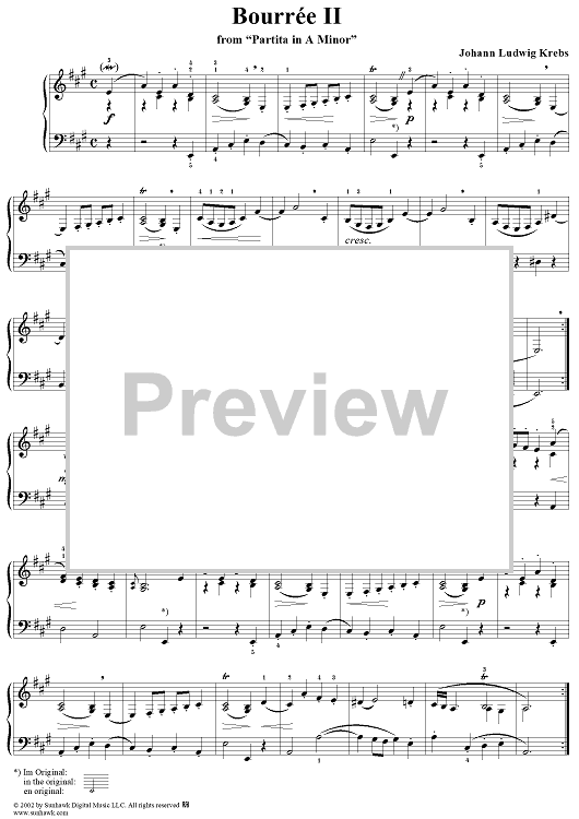 Digital Sheet Music for Bourree II by Johann Ludwig Krebs scored for Piano Solo; id:275285