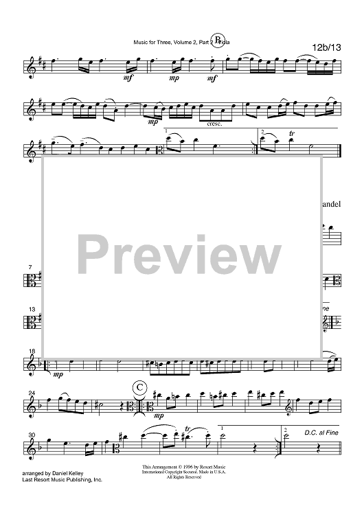 Digital Sheet Music for Bourree, La Rejouissance & Menuet from The Fireworks Music - Part 2 Viola by , George Frideric Handel, Daniel Kelley scored for Instrumental Trio; id:422587