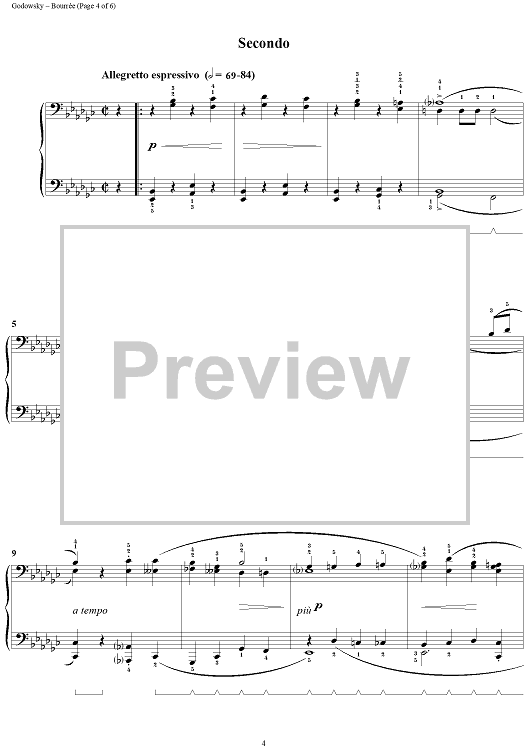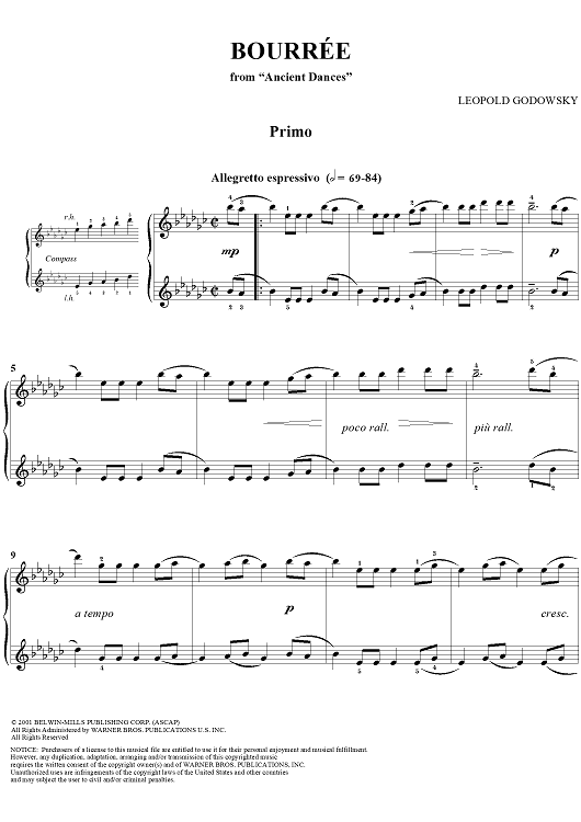 Digital Sheet Music for Bourrée by Leopold Godowsky scored for 1 Piano, 4 Hands; id:284396