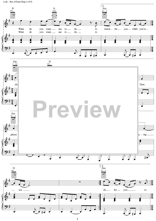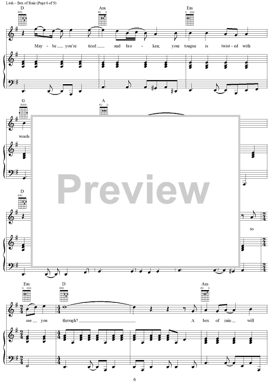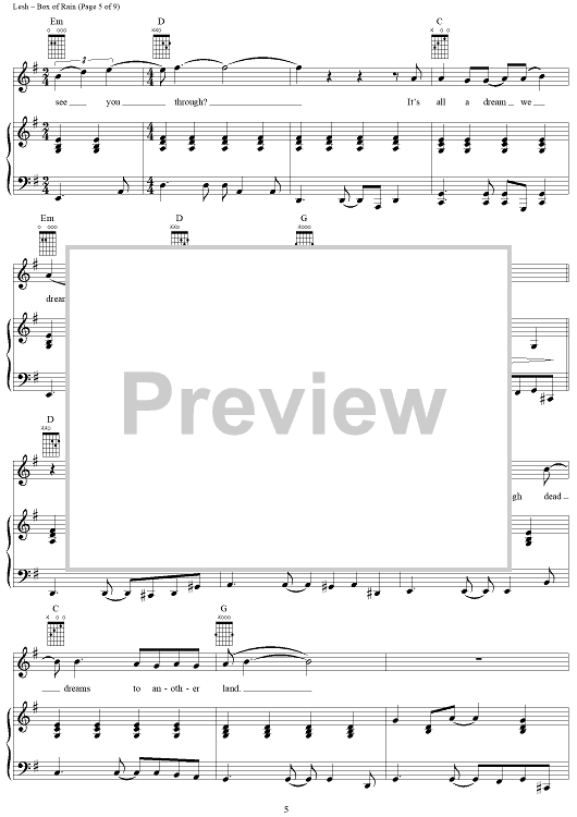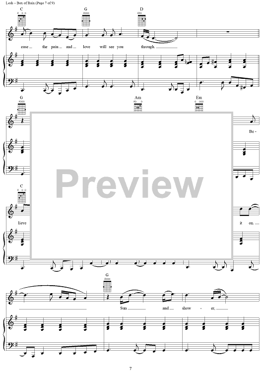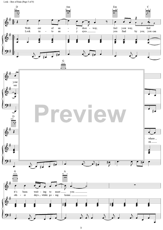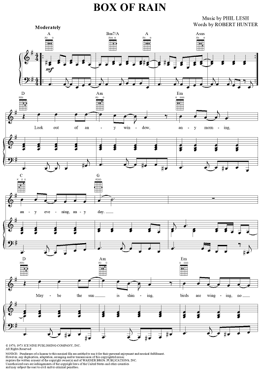 Digital Sheet Music for Box of Rain by Robert Hunter, Phil Lesh, Grateful Dead scored for Piano/Vocal/Chords; id:250641