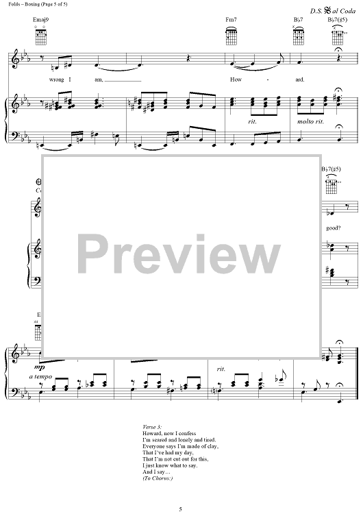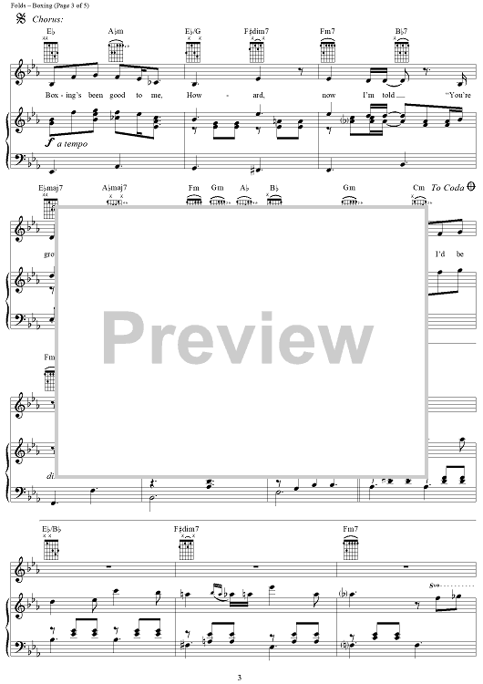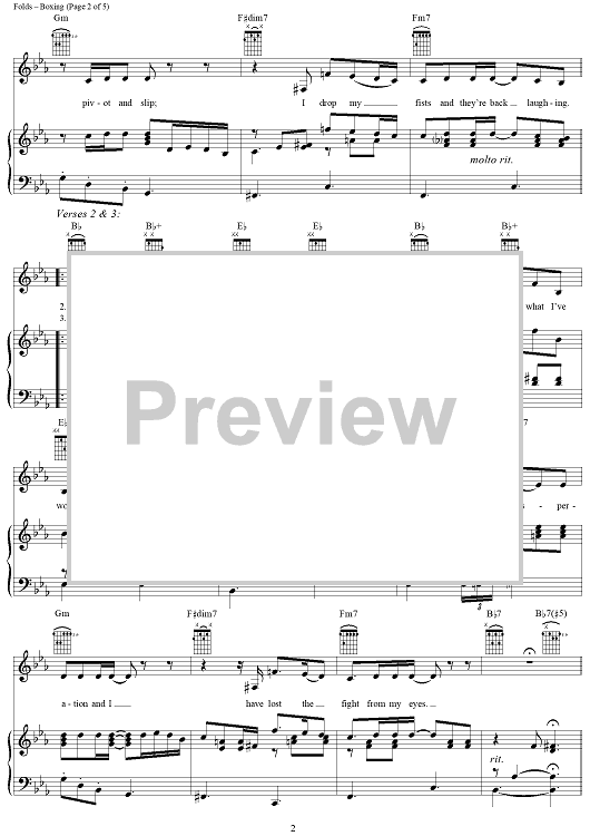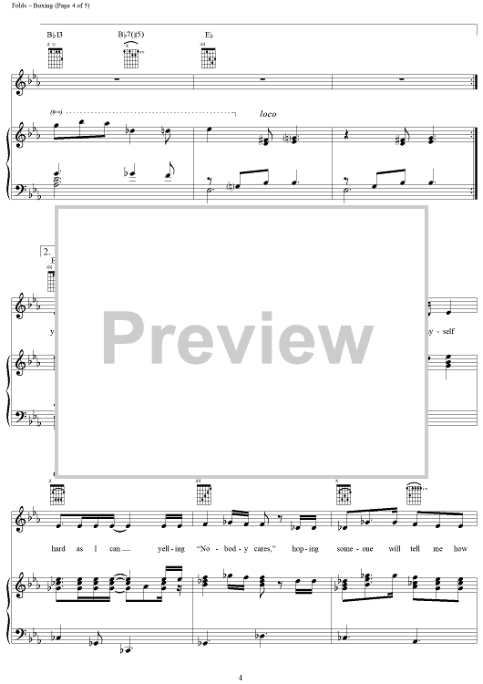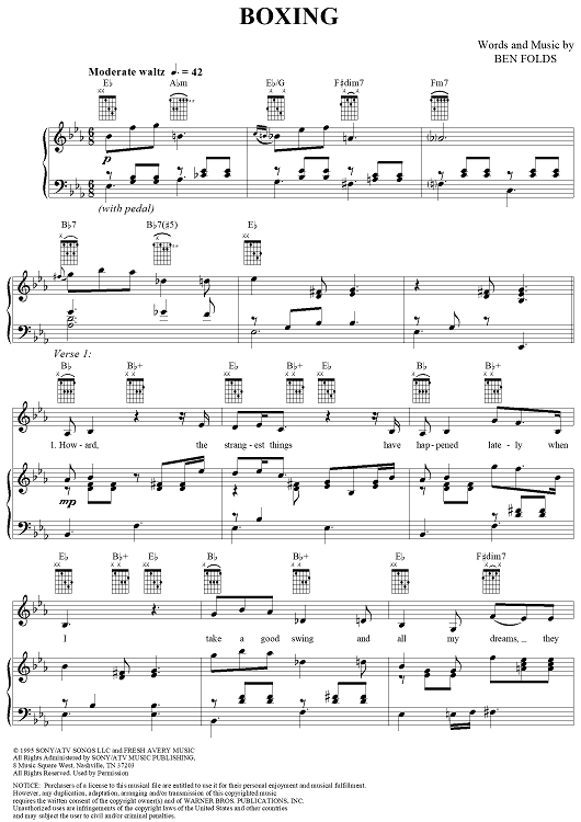 Digital Sheet Music for Boxing by Ben Folds, Bette Midler scored for Piano/Vocal/Chords; id:269325