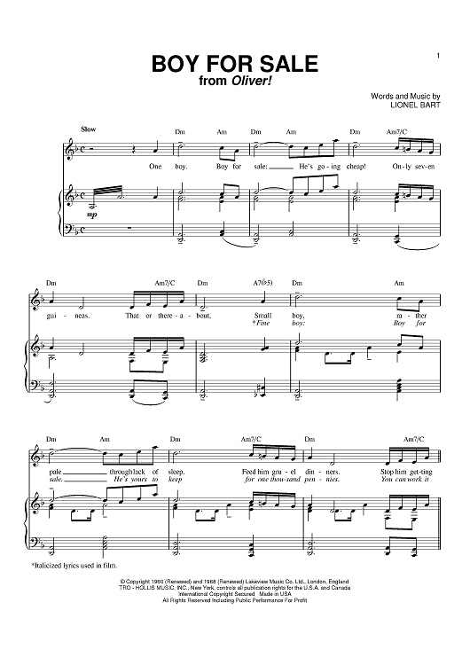 Digital Sheet Music for Boy For Sale by Lionel Bart scored for Piano/Vocal/Chords; id:390862