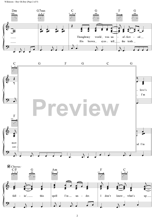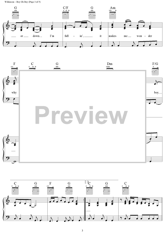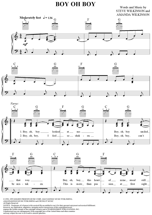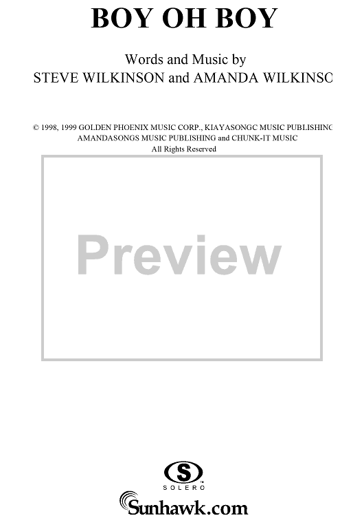 Digital Sheet Music for Boy Oh Boy by Steve Wilkinson, The Wilkinsons, Amanda Wilkinson scored for Piano/Vocal/Chords; id:263921