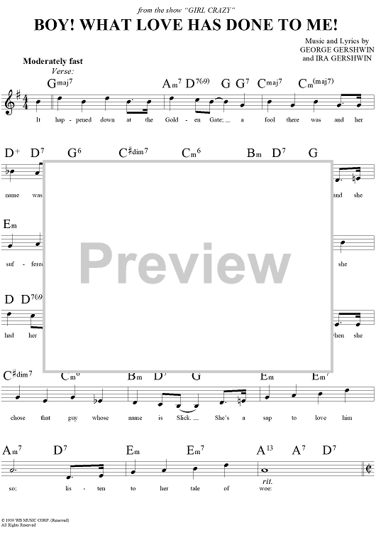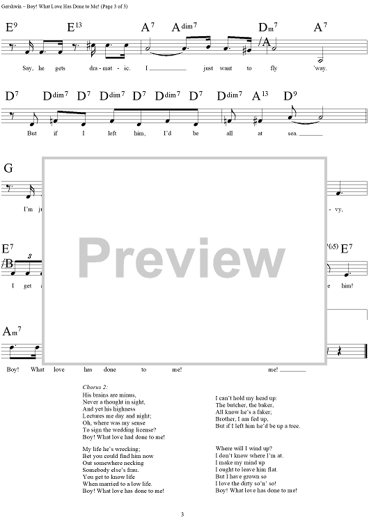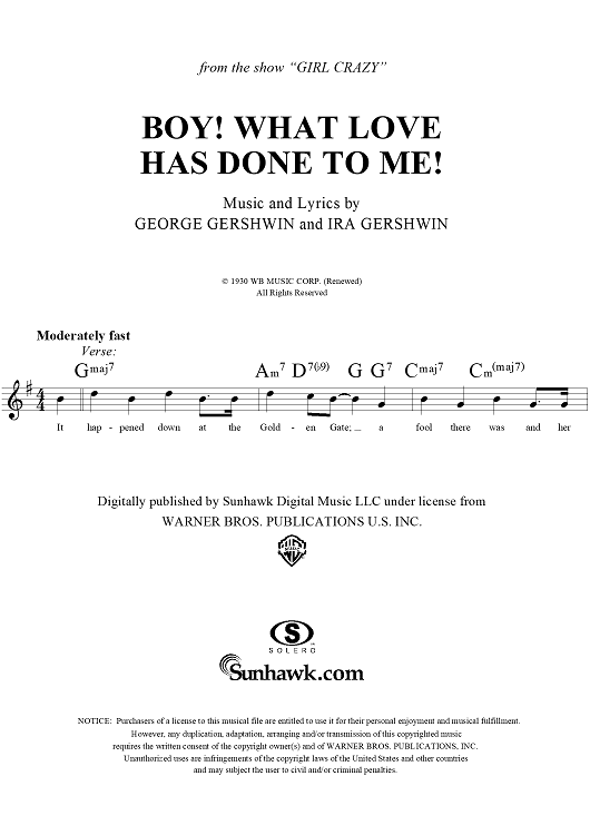 Digital Sheet Music for Boy! What Love Has Done to Me! by , George Gershwin, Ira Gershwin scored for Lead Sheet; id:283562