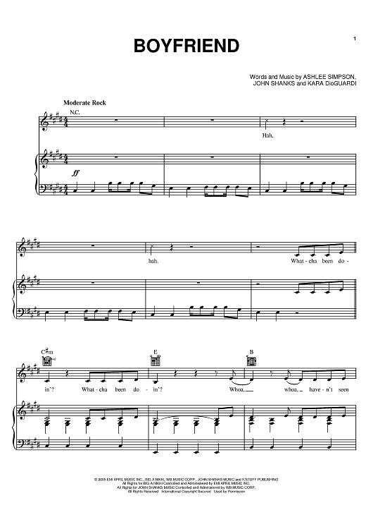 Digital Sheet Music for Boyfriend by John Shanks, Kara DioGuardi, Ashlee Simpson scored for Piano/Vocal/Chords; id:387537