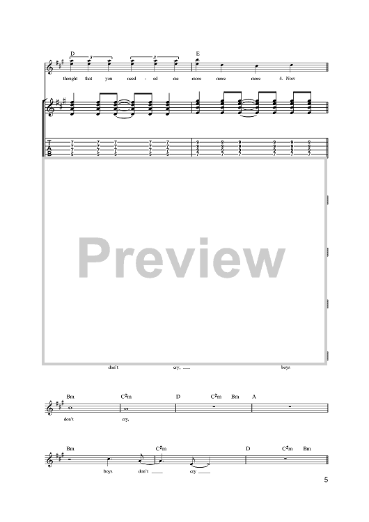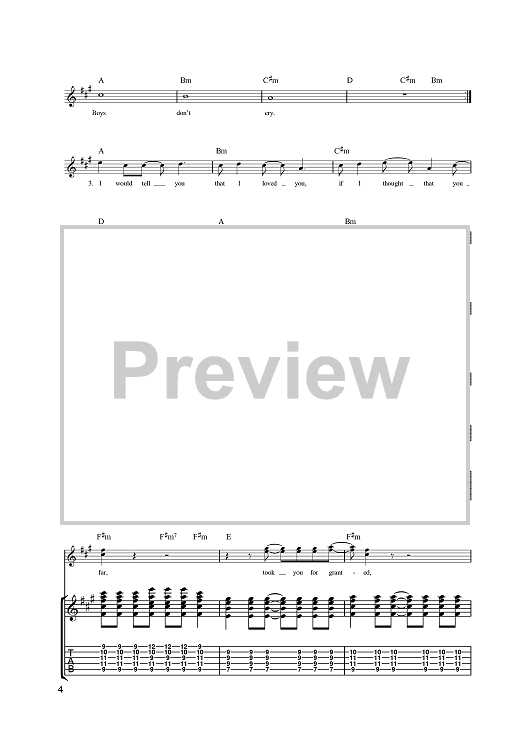 "Boys Don't Cry" Sheet Music by The Cure