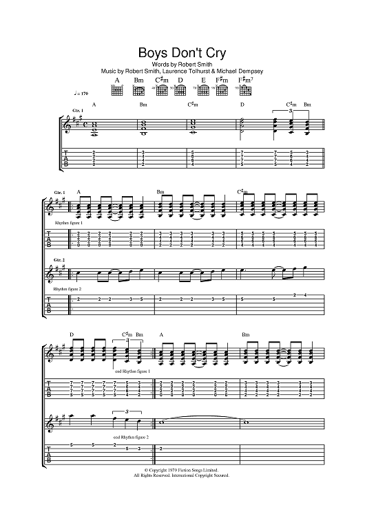 Digital Sheet Music for Boys Don't Cry by Wolfman Jack, The Cure, Michael Dempsey, Laurence Tolhurst scored for Guitar Tab; id:396180