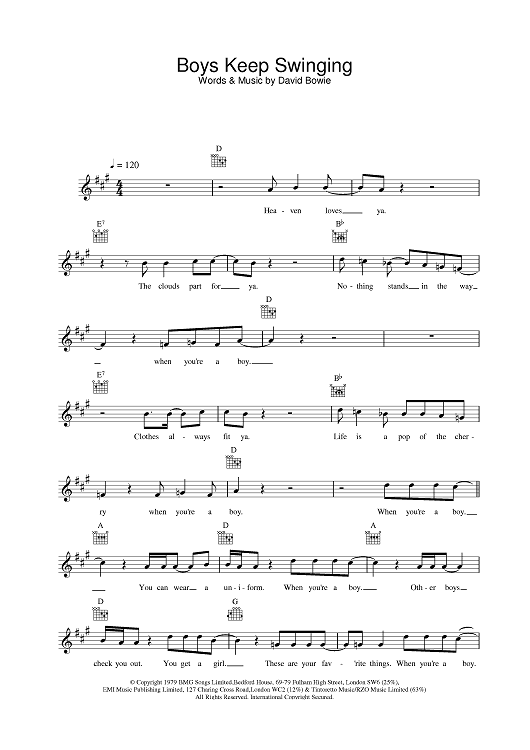 "Boys Keep Swinging" Sheet Music by David Bowie