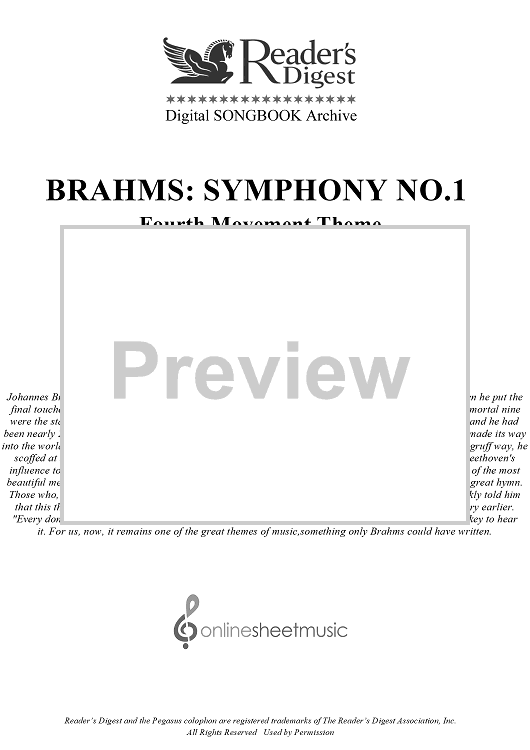 "Brahms: Symphony No. 1 - Fourth Movement Theme" Sheet Music by Johannes Brahms