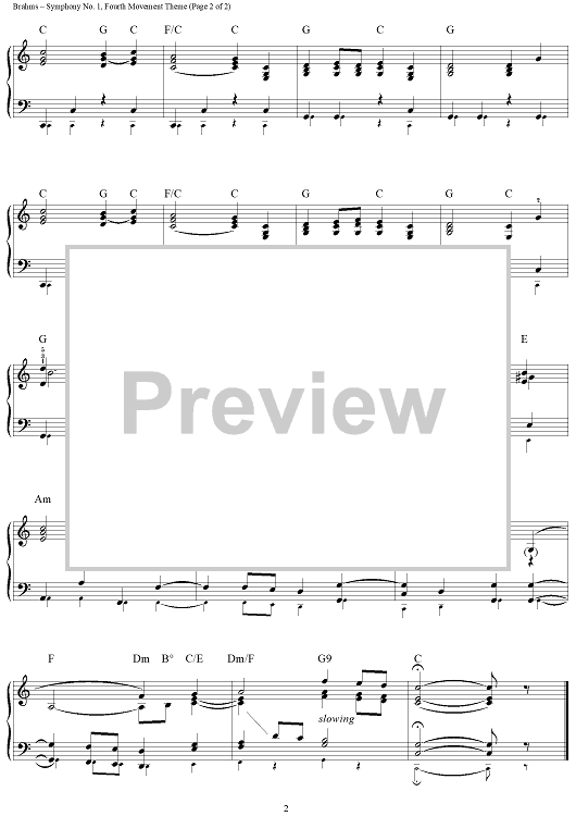 Digital Sheet Music for Brahms: Symphony No. 1 - Fourth Movement Theme by Johannes Brahms scored for Easy Piano/Chords; id:434747