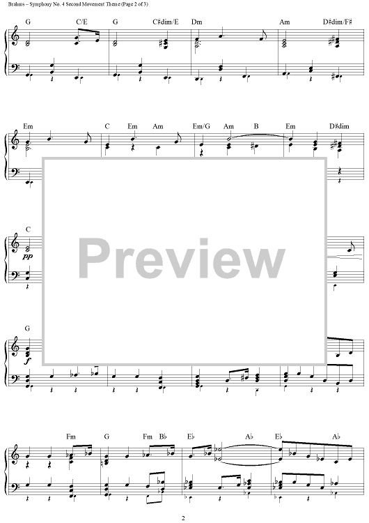 Digital Sheet Music for Brahms: Symphony No. 4 - Second Movement Theme by Johannes Brahms scored for Easy Piano/Chords; id:434750