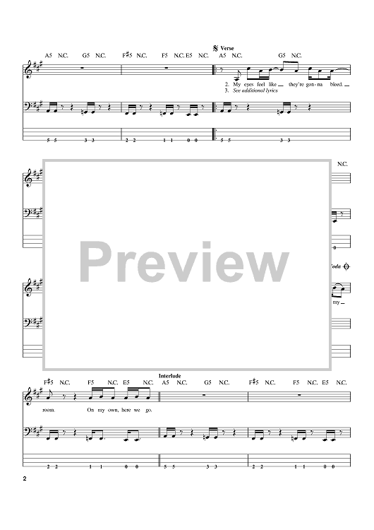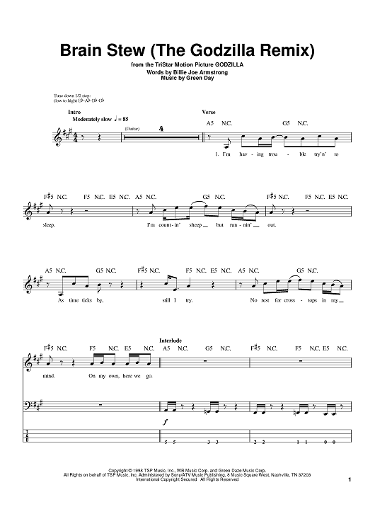 Digital Sheet Music for Brain Stew (The Godzilla Remix) by Billie Joe Armstrong, Green Day scored for Bass Tab; id:394609