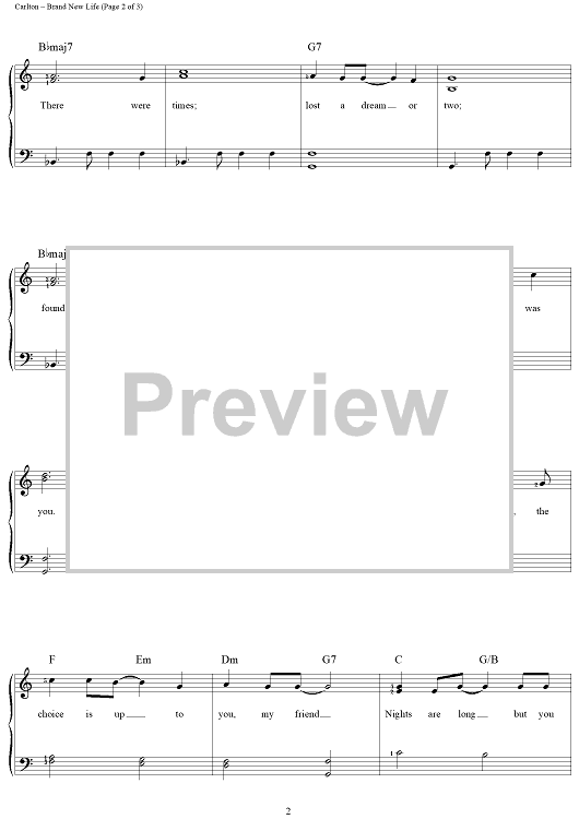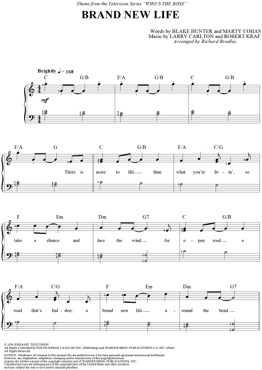Digital Sheet Music for Brand New Life by Larry Carlton, Richard Bradley, Blake Hunter, Marty Cohan, Robert Kraft scored for Easy Piano/Vocal; id:148632