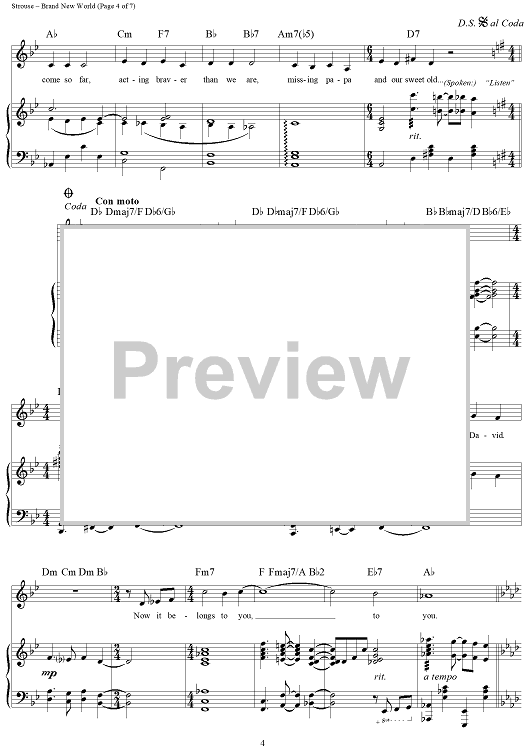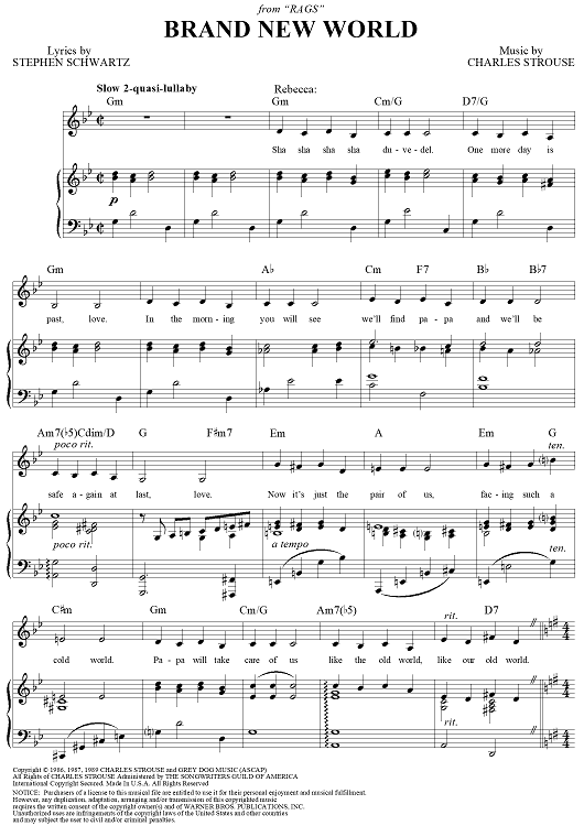 Digital Sheet Music for Brand New World by Charles Strouse, Stephen Schwartz scored for Piano/Vocal/Chords; id:257790