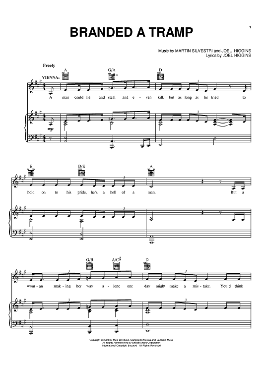 Digital Sheet Music for Branded A Tramp by Joel Higgins, Martin Silvestri scored for Piano/Vocal/Chords; id:386489
