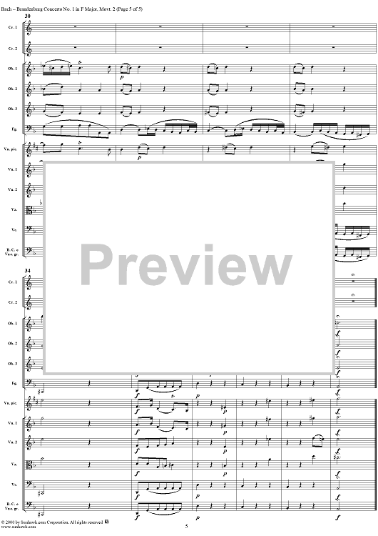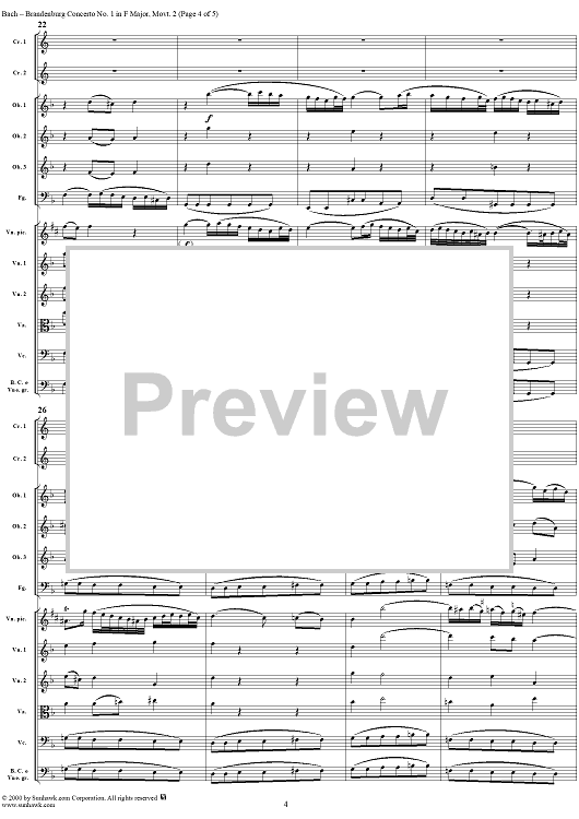 Digital Sheet Music for Brandenburg Concerto No. 1: Adagio - Score by Johann Sebastian Bach scored for Chamber Orchestra; id:276714