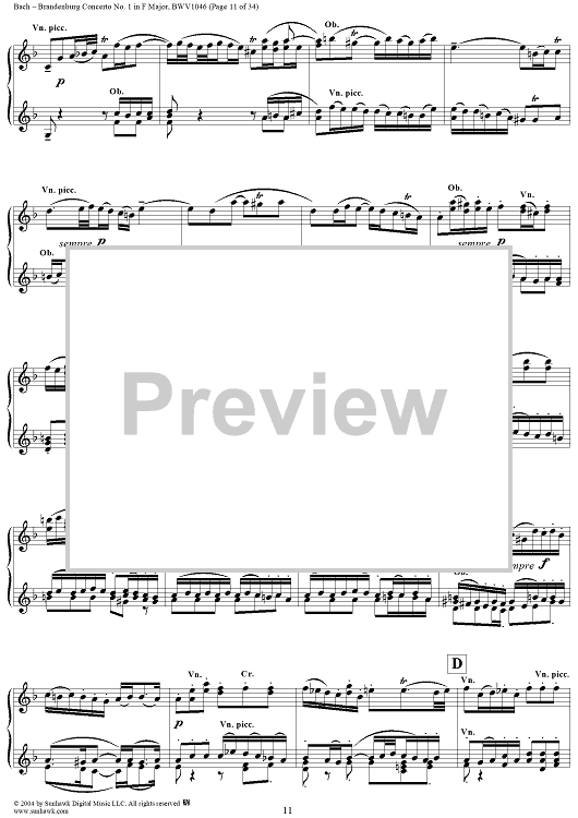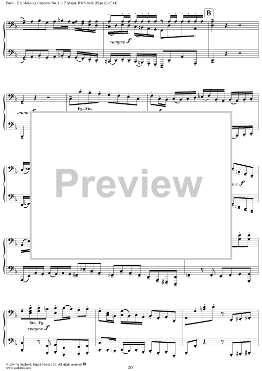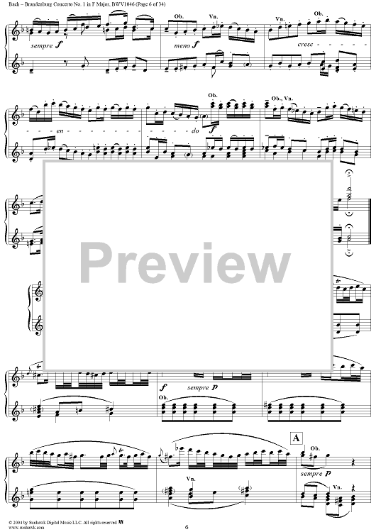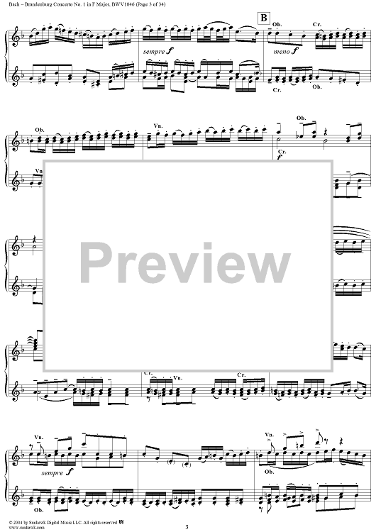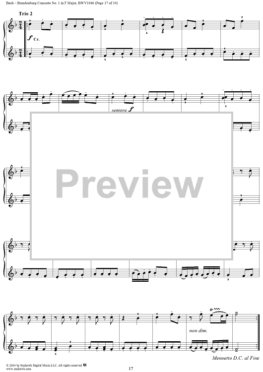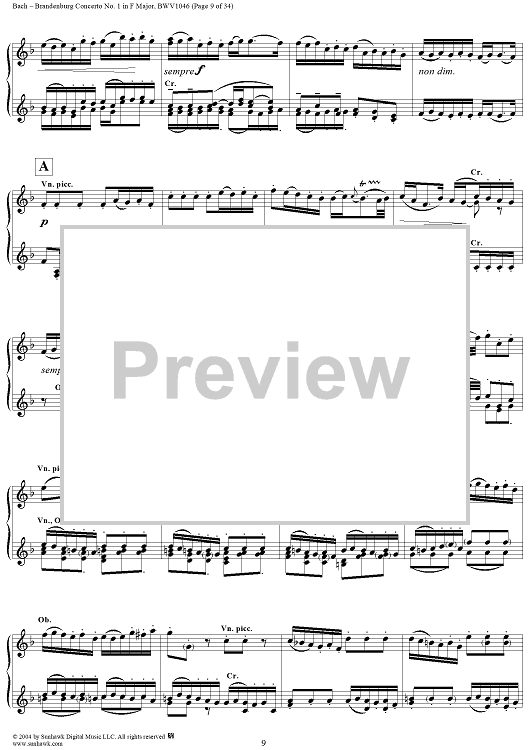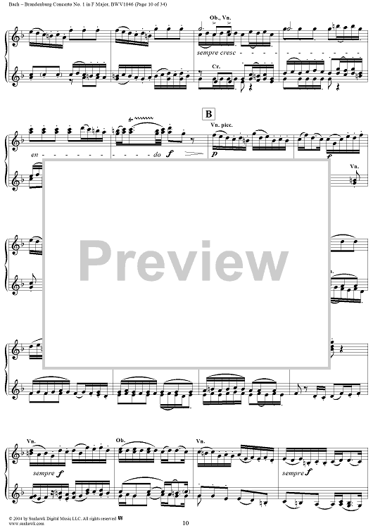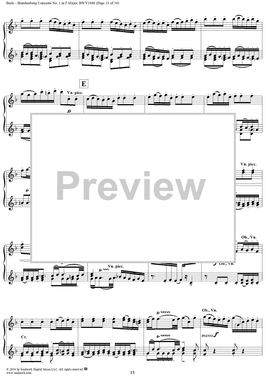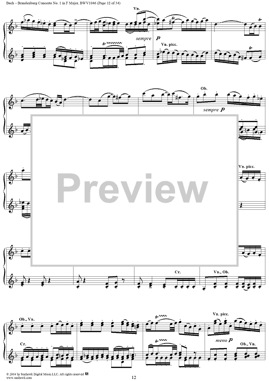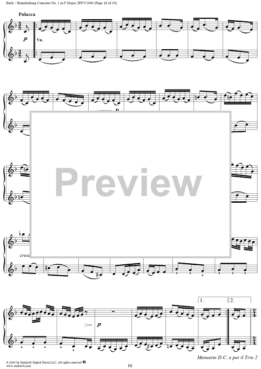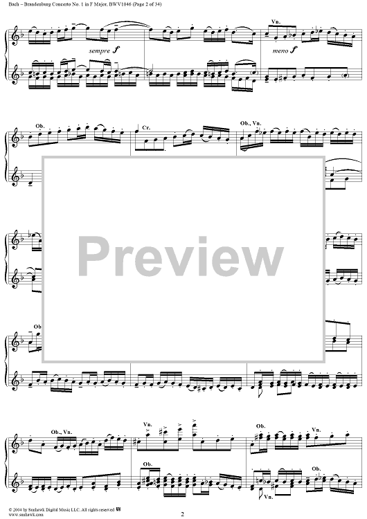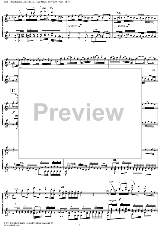 "Brandenburg Concerto No. 1 in F Major, BWV1046" Sheet Music by Johann Sebastian Bach