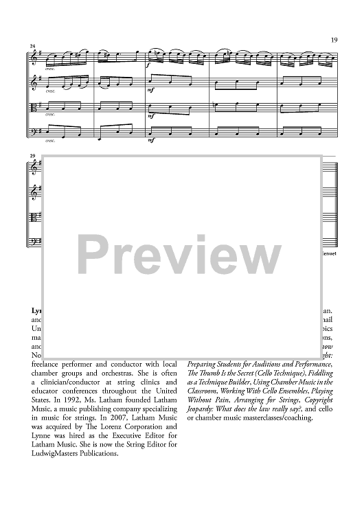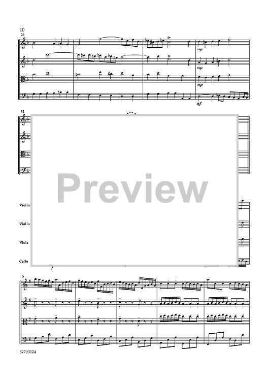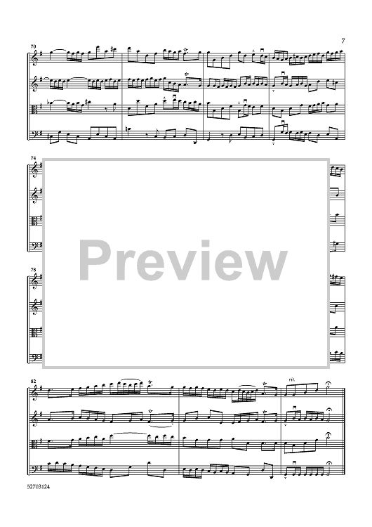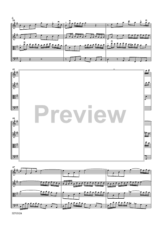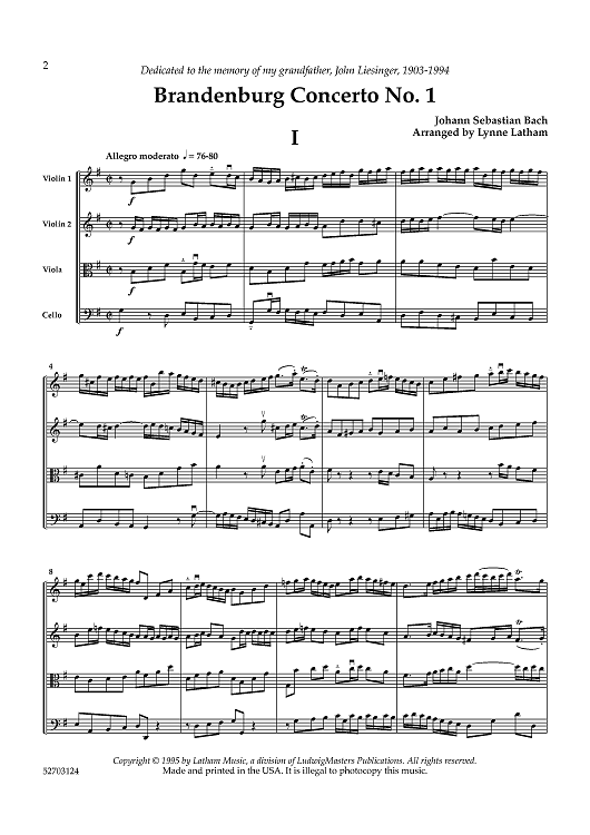 Digital Sheet Music for Brandenburg Concerto No. 1 - Score by Johann Sebastian Bach, Lynne Latham scored for String Quartet; id:461150
