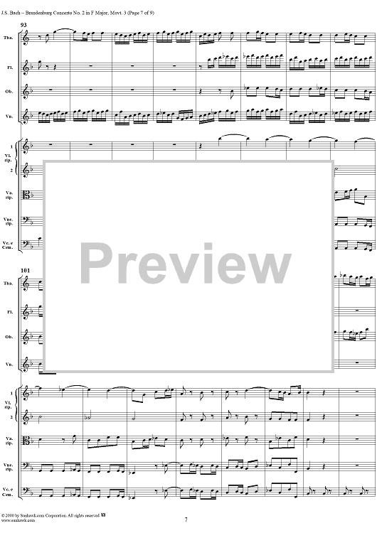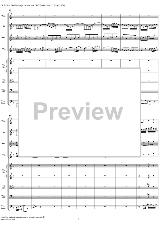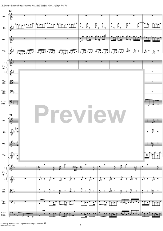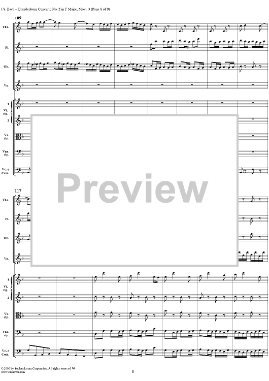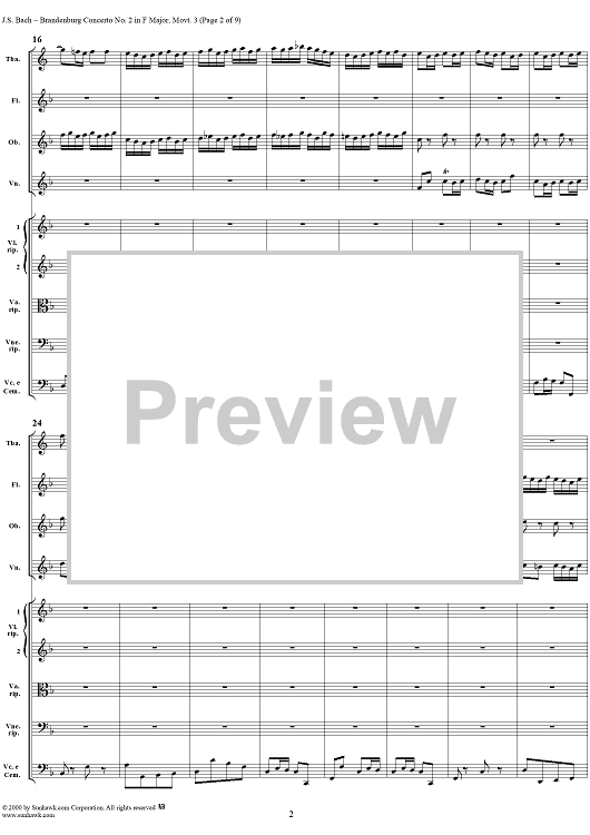 Digital Sheet Music for Brandenburg Concerto No. 2: Allegro Assai - Score by Johann Sebastian Bach scored for Chamber Orchestra; id:234933