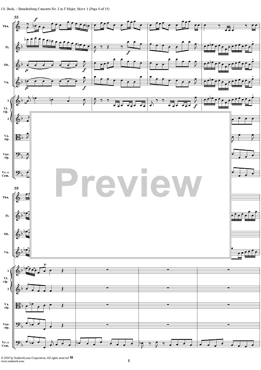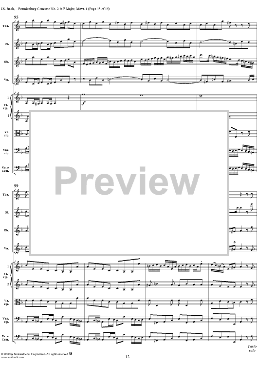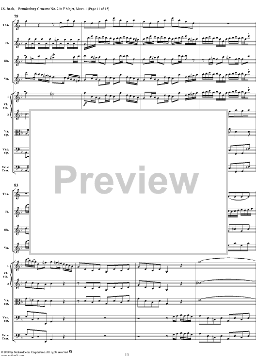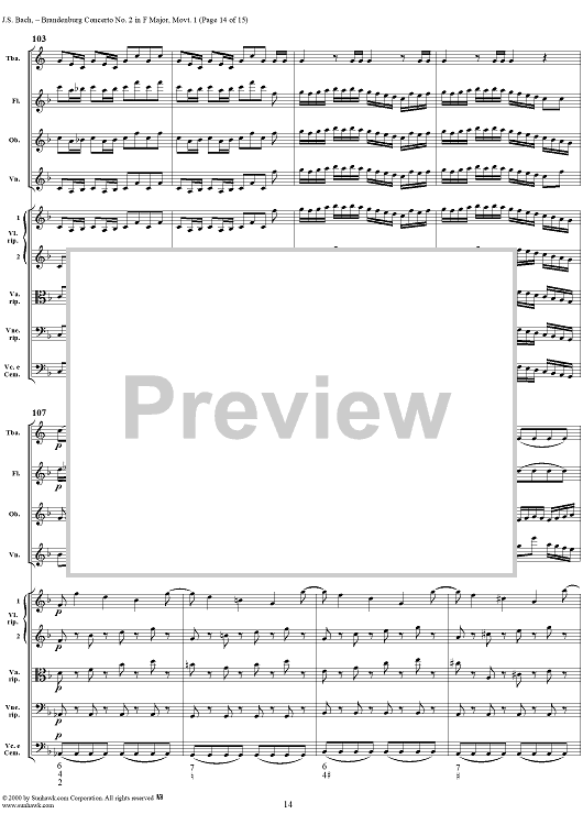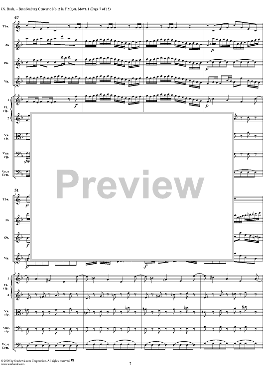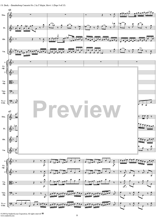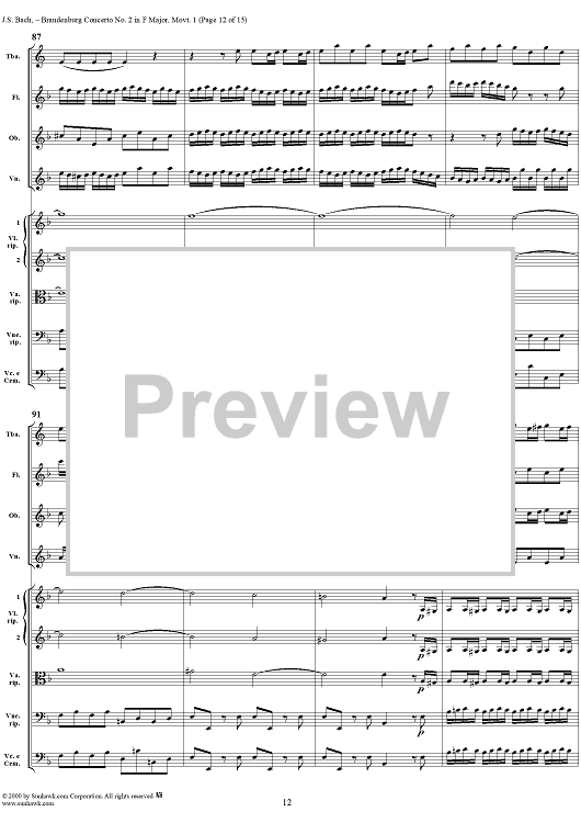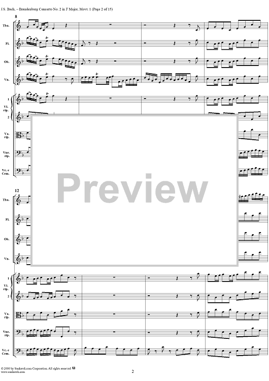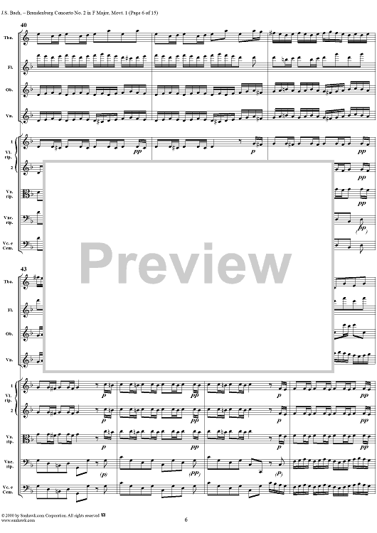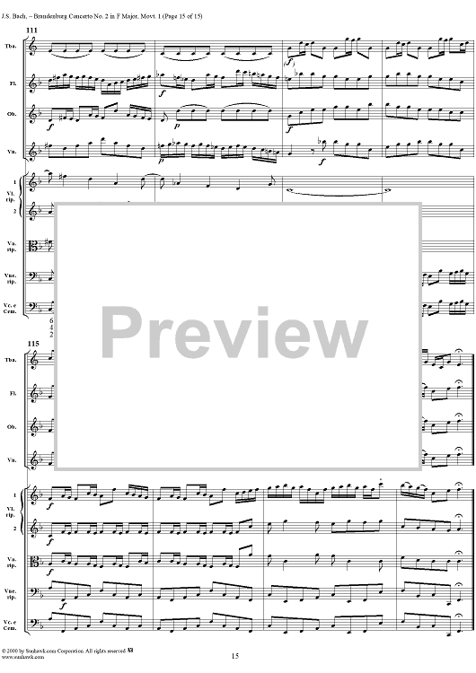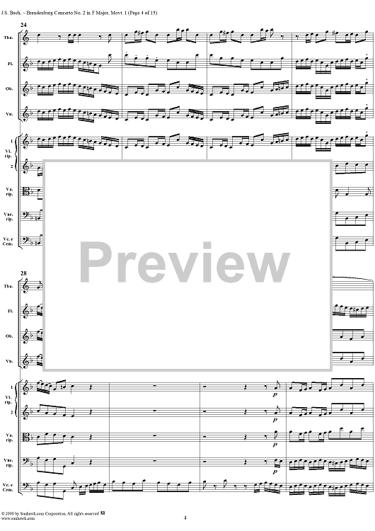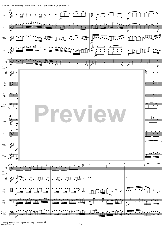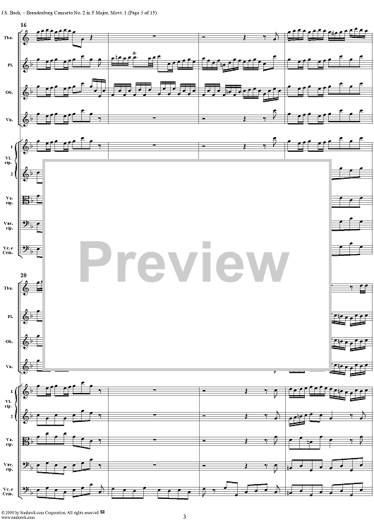 Digital Sheet Music for Brandenburg Concerto No. 2: (Allegro) - Score by Johann Sebastian Bach scored for Chamber Orchestra; id:234930