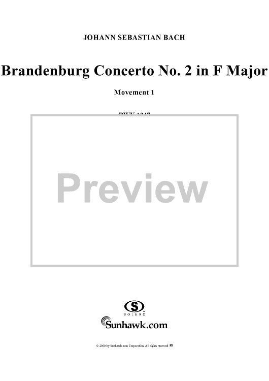 "Brandenburg Concerto No. 2: (Allegro) - Score" Sheet Music by Johann Sebastian Bach