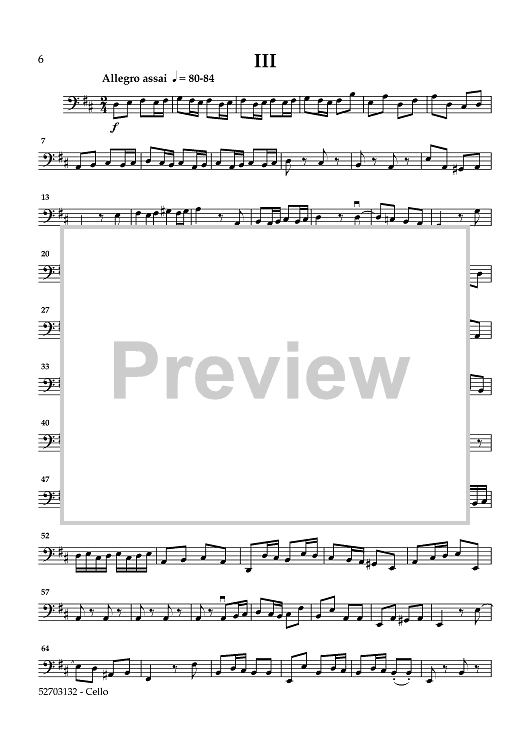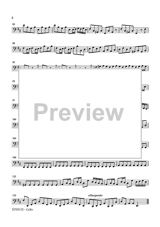 Digital Sheet Music for Brandenburg Concerto No. 2 - Cello by Johann Sebastian Bach, Lynne Latham scored for String Quartet; id:461161